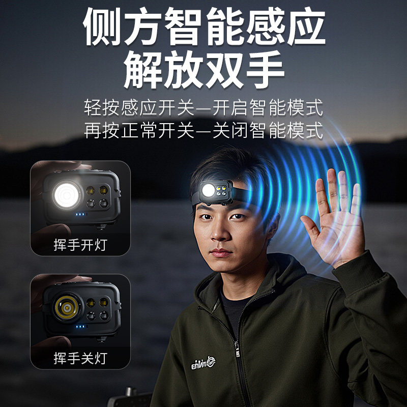 头戴式 充电超亮钓鱼专用感应led户外 强光头灯手电筒矿灯2025新款