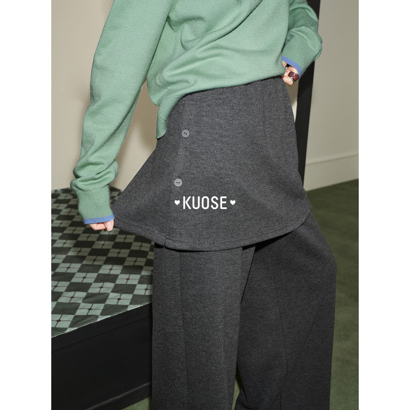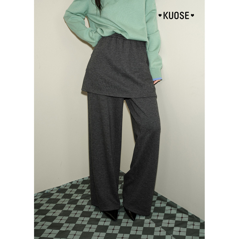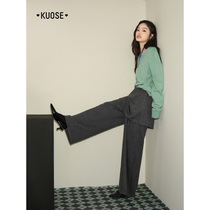 慵懒设计感裤 阔色深灰色屁帘休闲直筒裤 新款 女2025秋冬季 子 长裤
