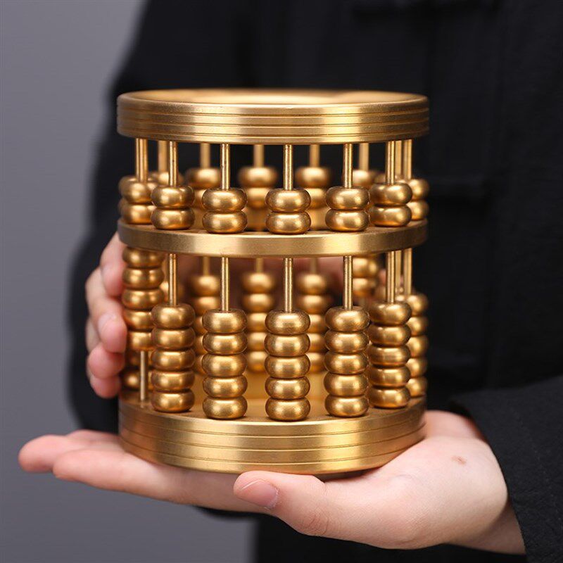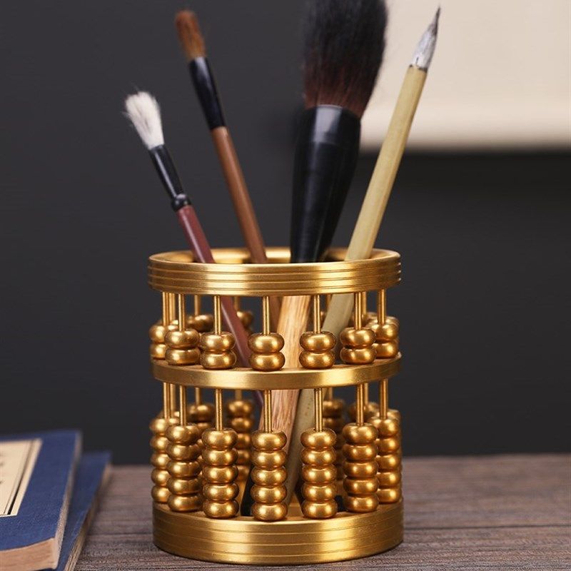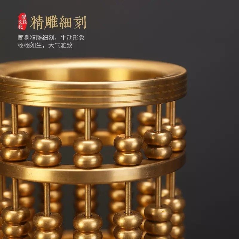 黄铜创意算盘招财笔筒老板办公室桌面摆件多功能茶具配件铜收纳筒