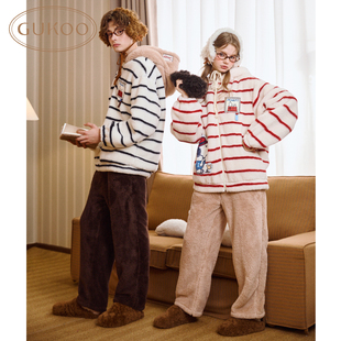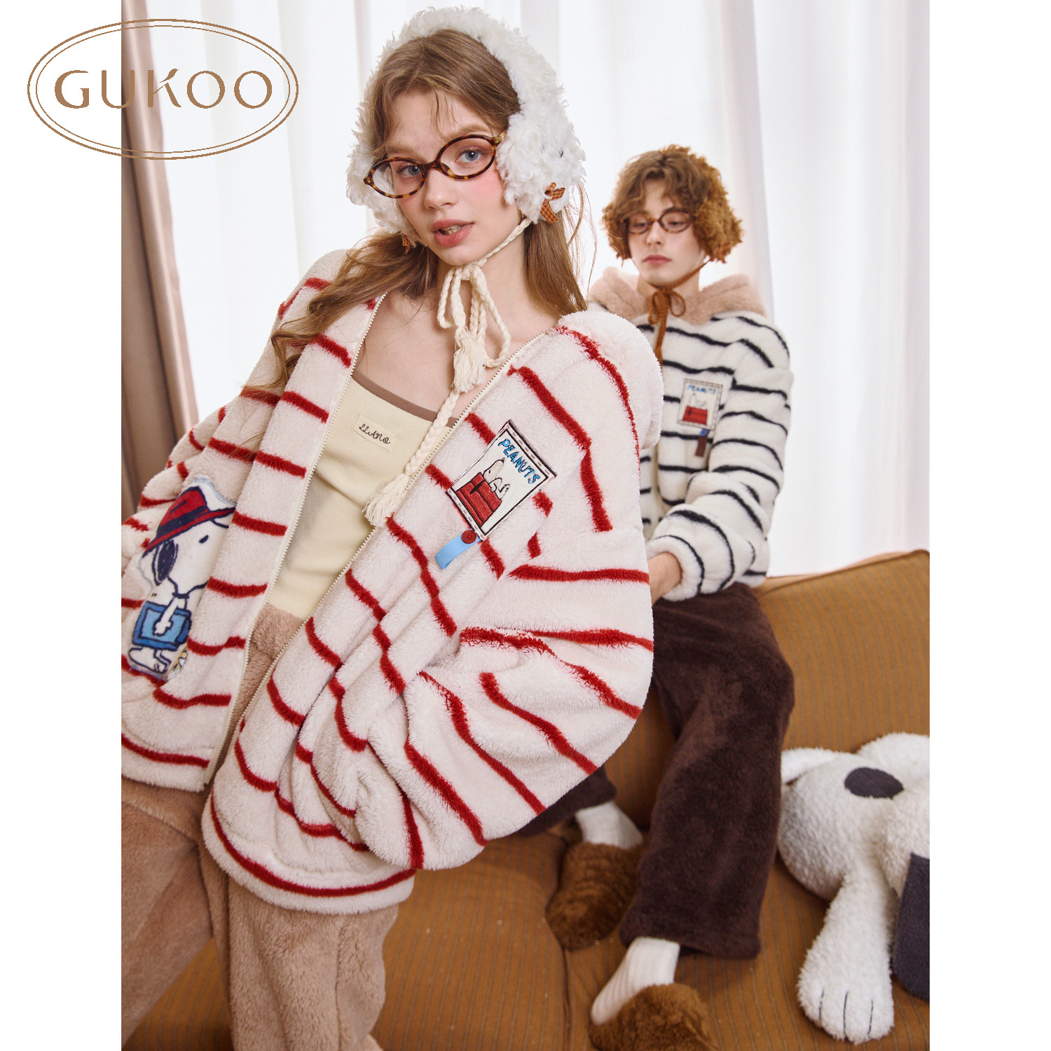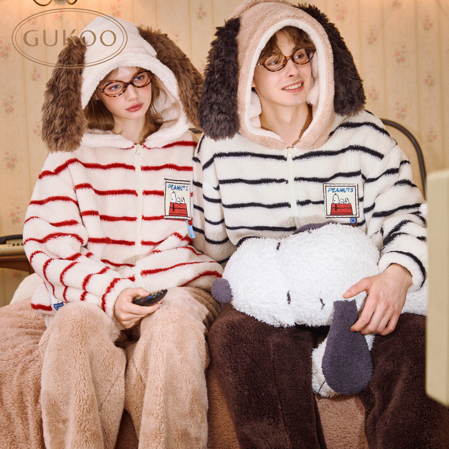 史努比联名女士家居服套装 毛绒保暖新款 果壳情侣睡衣冬季 Gukoo