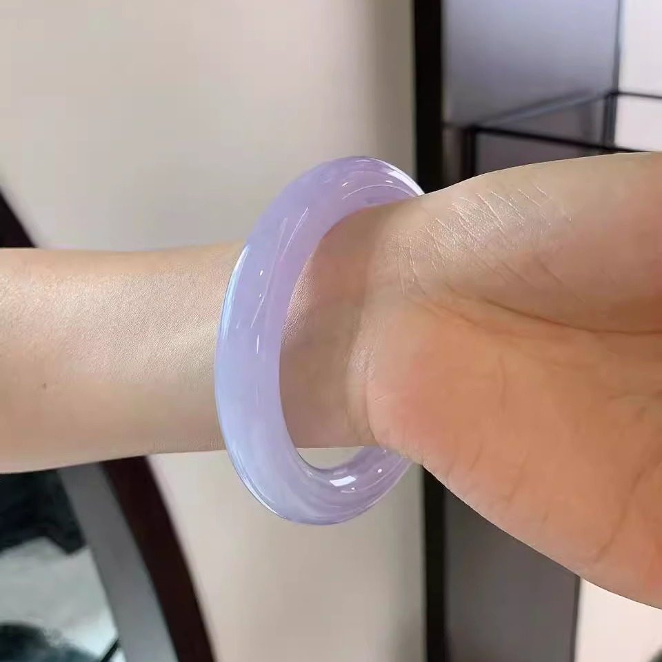 天然高冰透白月光玛瑙荔枝冻玉髓玉手镯马料香槟翡翠平安镯送女友