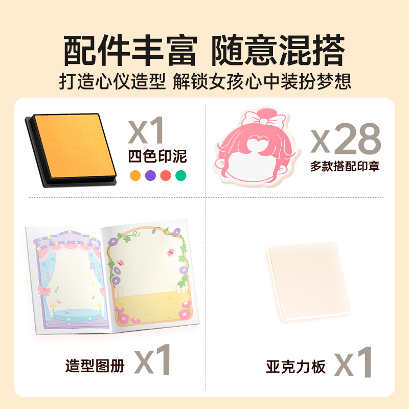时光学DIY手工换装 印章女孩手账本卡通可爱穿搭透明印章生日礼物