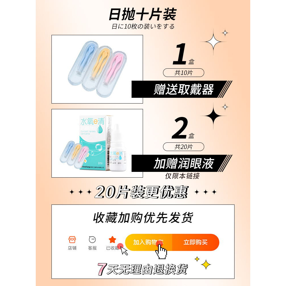 美瞳日抛30片奶萌猫咪瞳蜜桃可可14.5大直径近视隐形眼镜新品 3xx