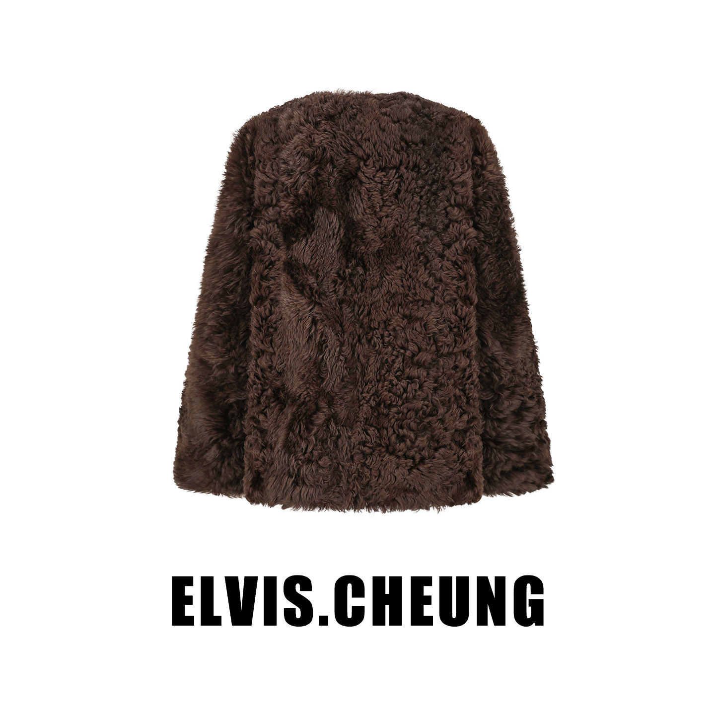 ELVIS.CHEUNG25秋冬皮毛一体无领外套女高级显瘦气质时尚 百搭上衣