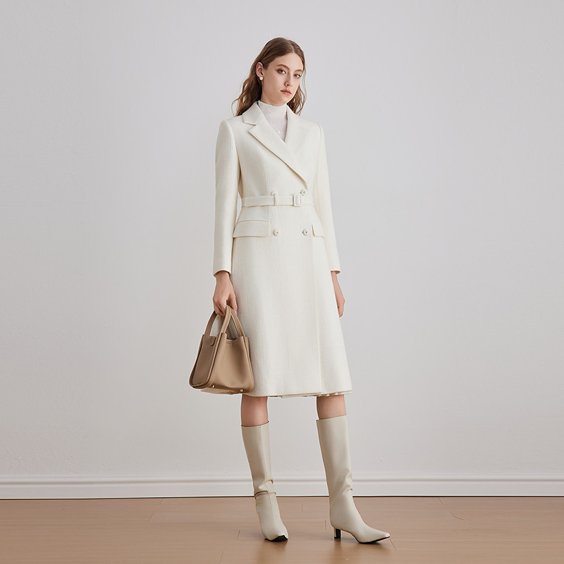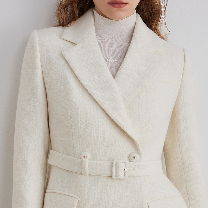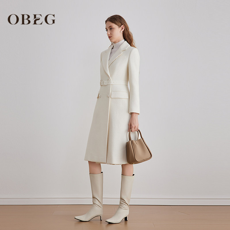 OBEG欧碧倩冬小香风粗花呢羊毛大衣女中长款 收腰外套50504560