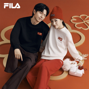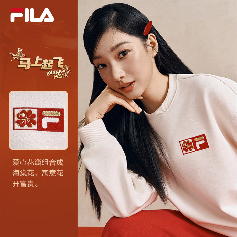 海棠花红色情侣新年款 马上起飞FILA斐乐男女同款 卫衣2026春新款