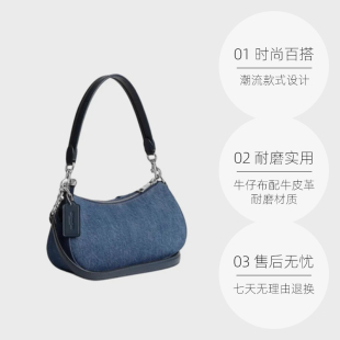 奥莱款 蔻驰Ashton COACH 女士牛仔布配皮单肩斜挎手提包 自营
