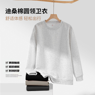 字母印花圆领T恤纯棉百搭情侣卫衣 男秋美式 青少年白色长袖 打底衫
