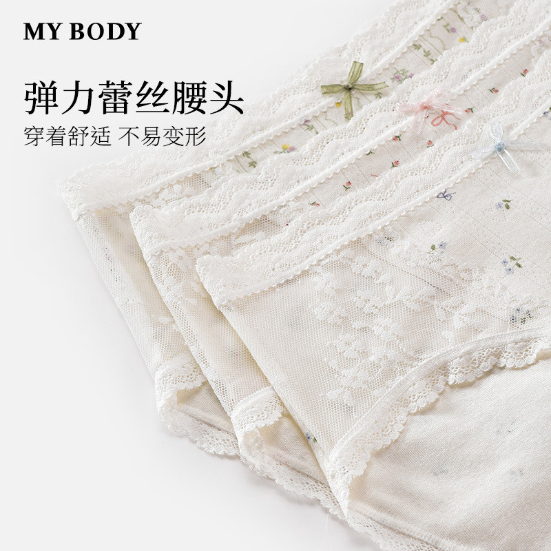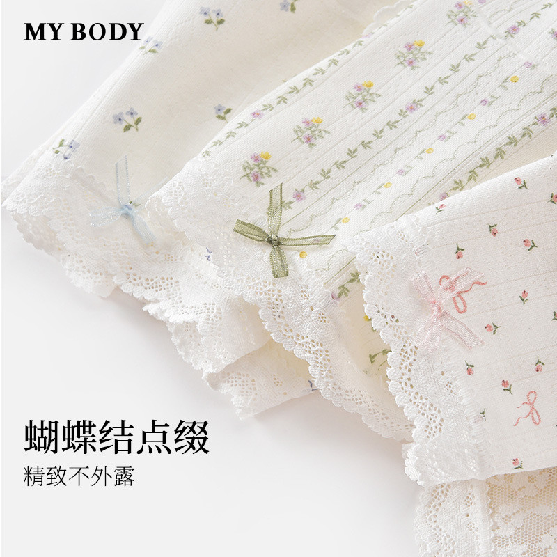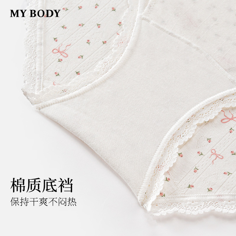 女清新印花棉感抗菌纯棉裆蕾丝三角裤 MYBODY内裤 商场同款 3件129