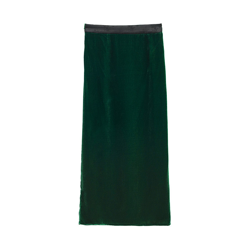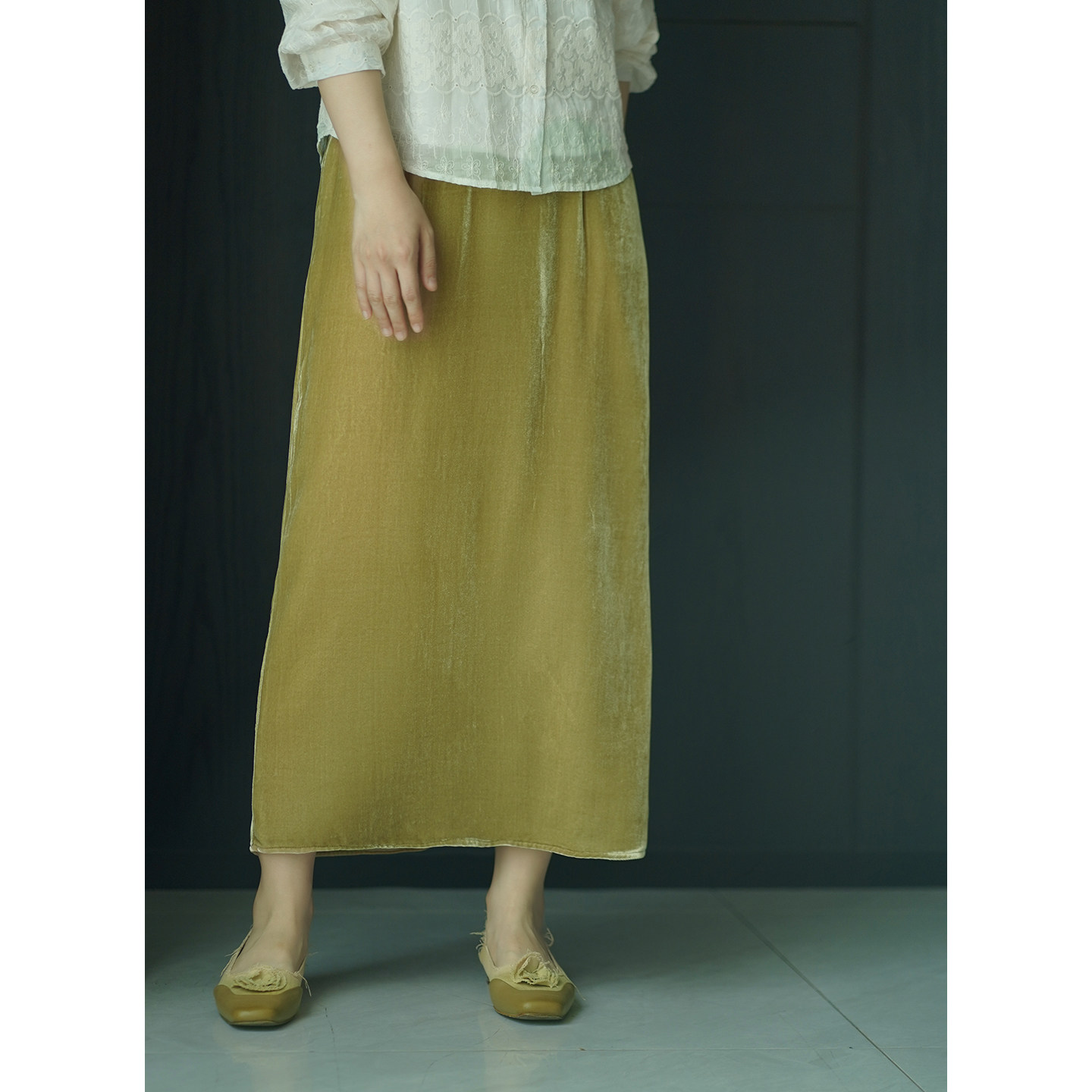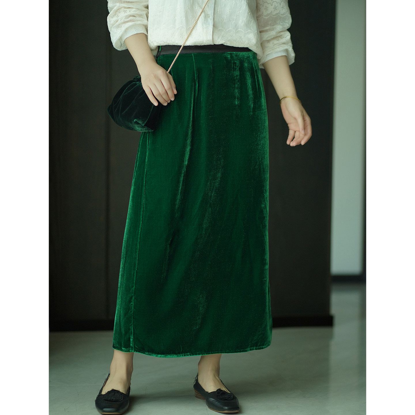 包臀裙 复古中长款 艾绘馆新中式 真丝丝绒高腰开叉半身裙女秋冬季