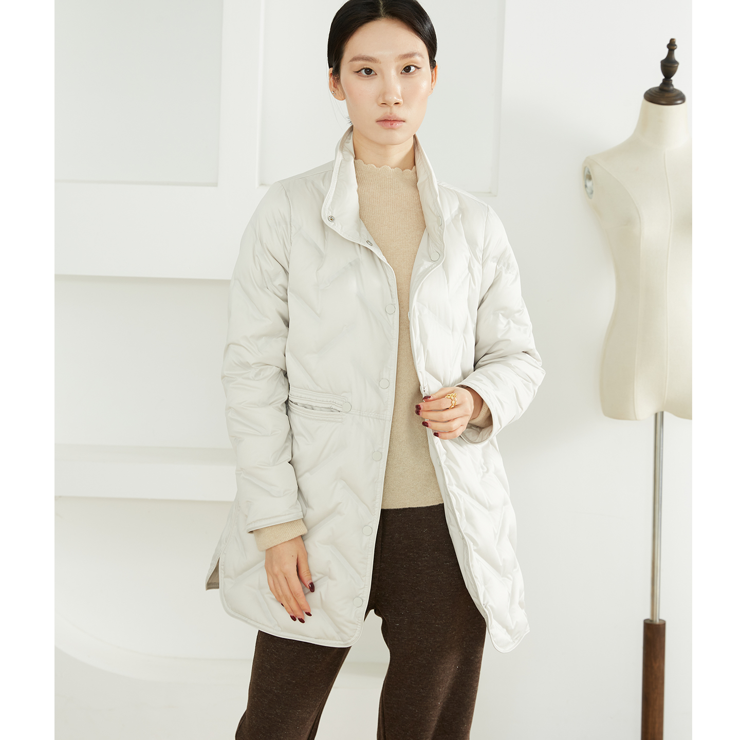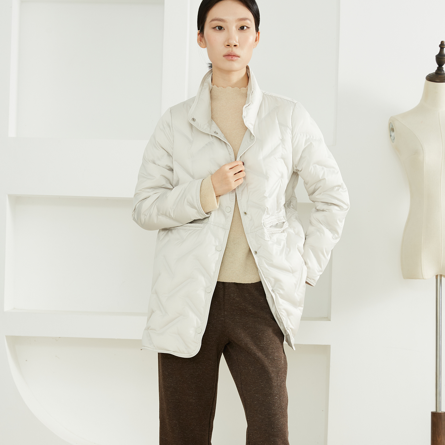 一丝牵双面穿波兰进口科鲁达95白鹅绒立领轻薄压胶羽绒服鹅绒服冬