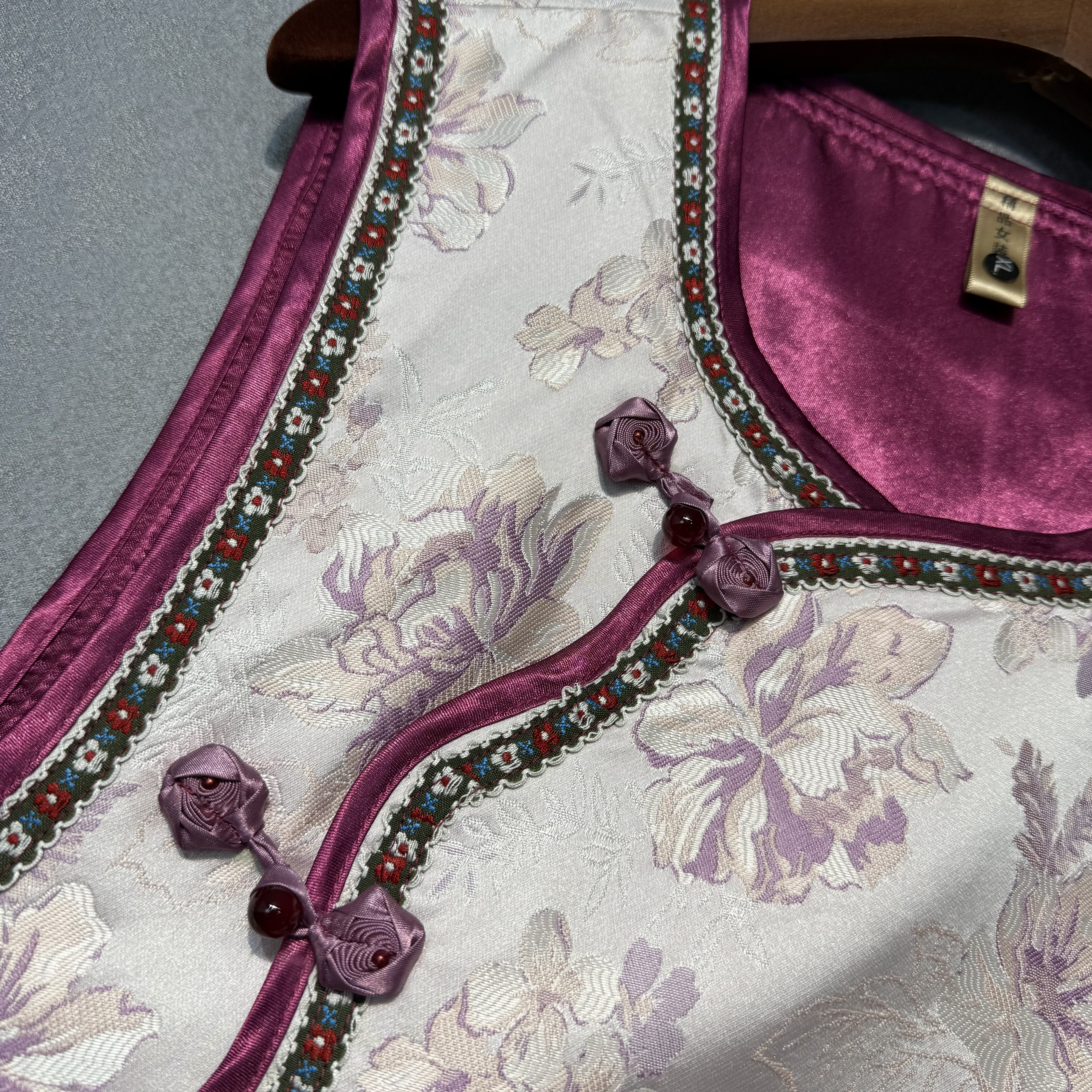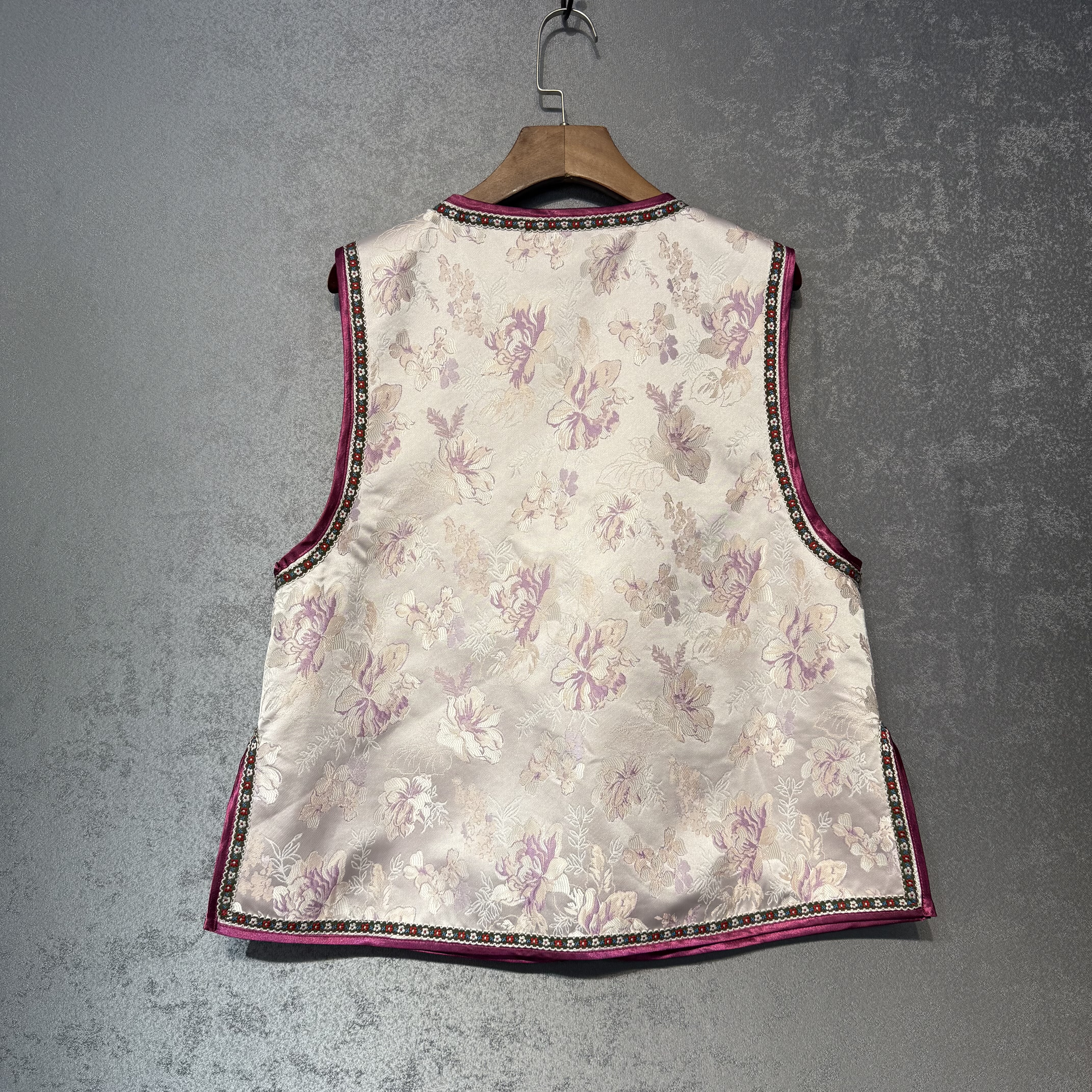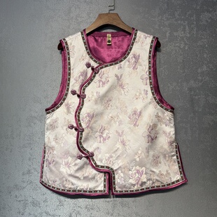 国风斜襟盘扣马甲女复古提花坎肩背心上衣 新中式 粉黛2025秋季 新款