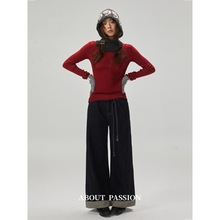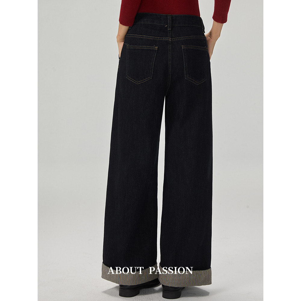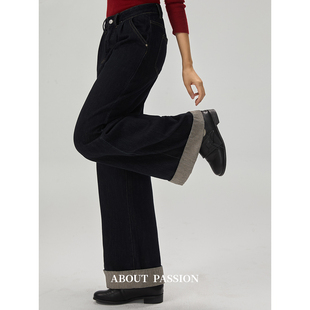 大直筒牛仔裤 加绒上新 2025秋冬新款 高腰阔腿牛仔裤 太平鸟广角裤