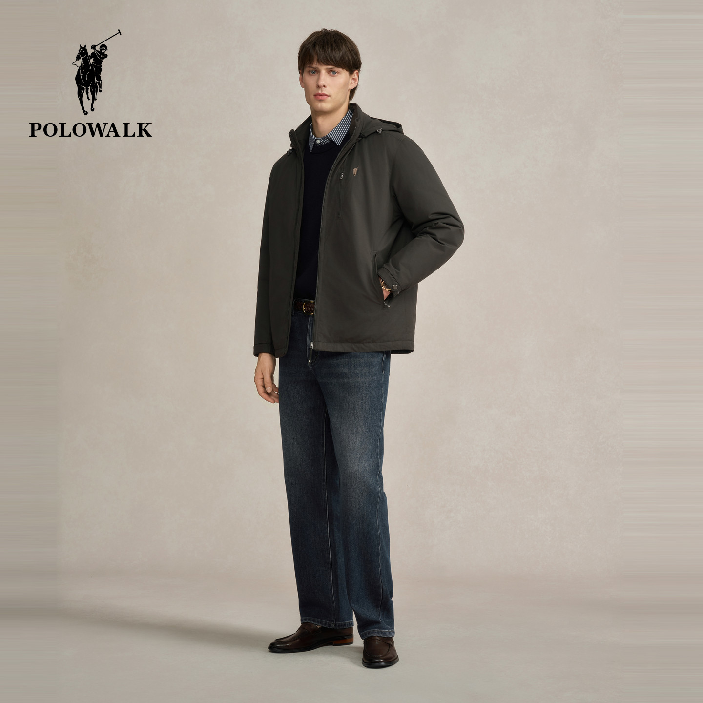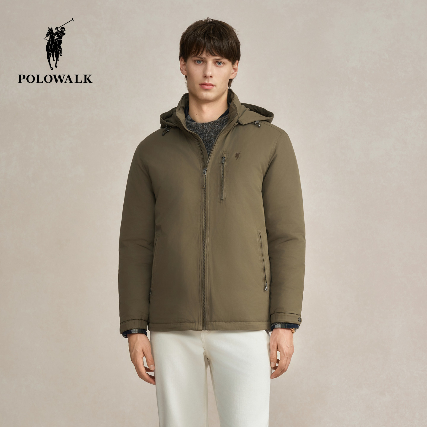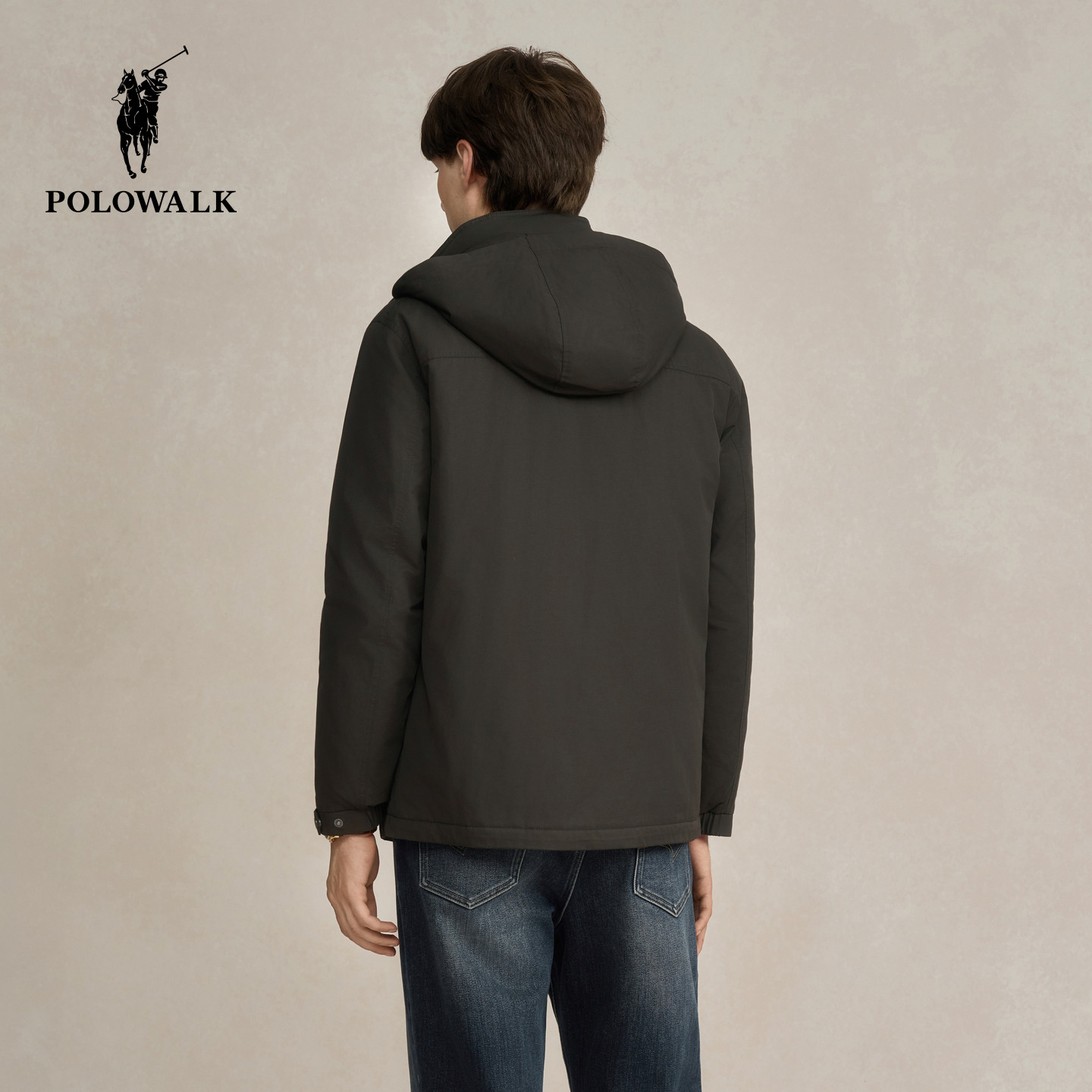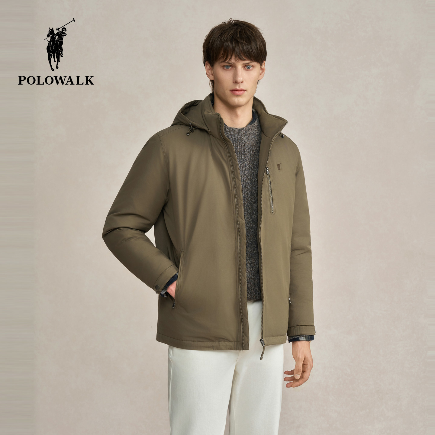 90鸭绒保暖户外休闲立领连帽外套 新品 POLOWALK男式 羽绒服2025冬季