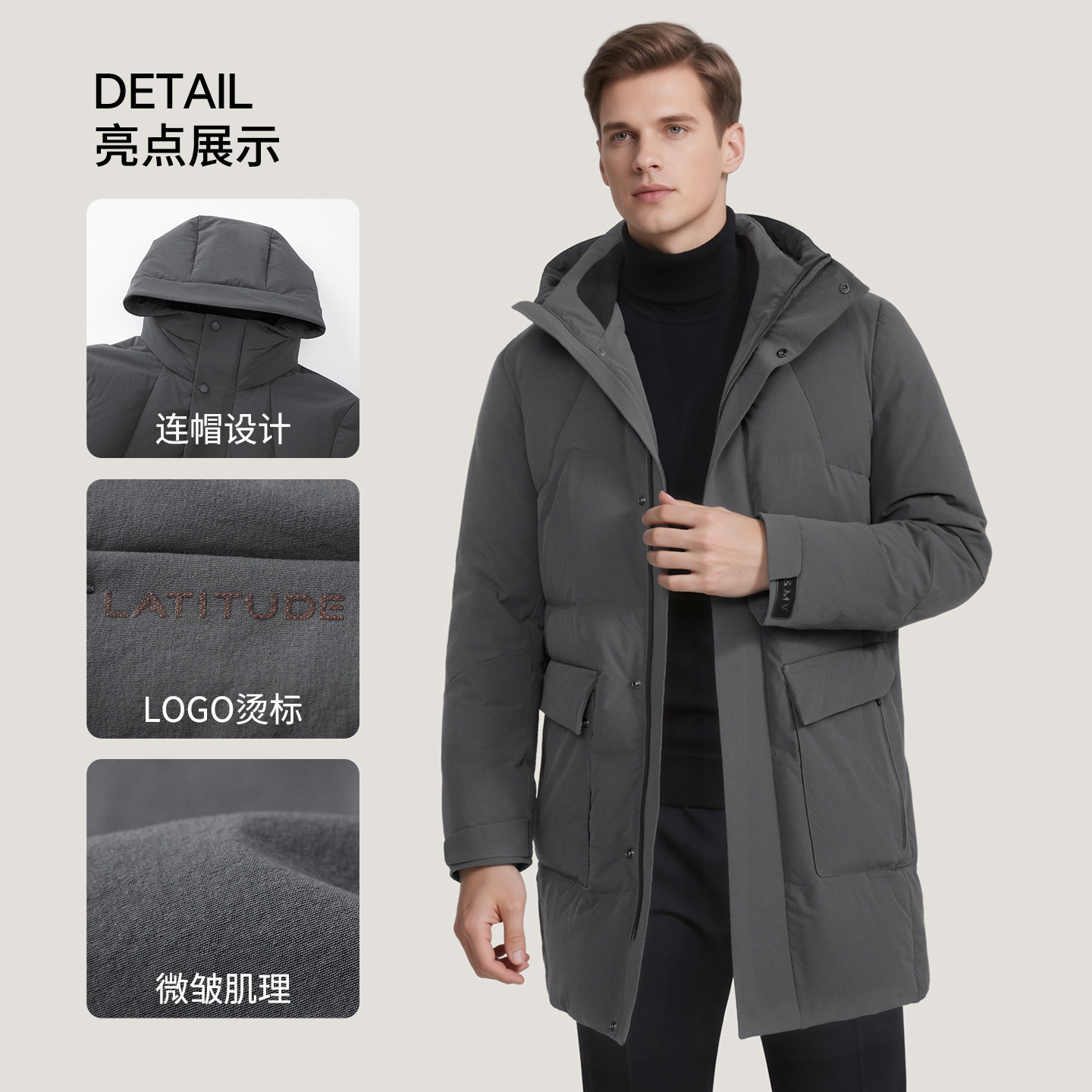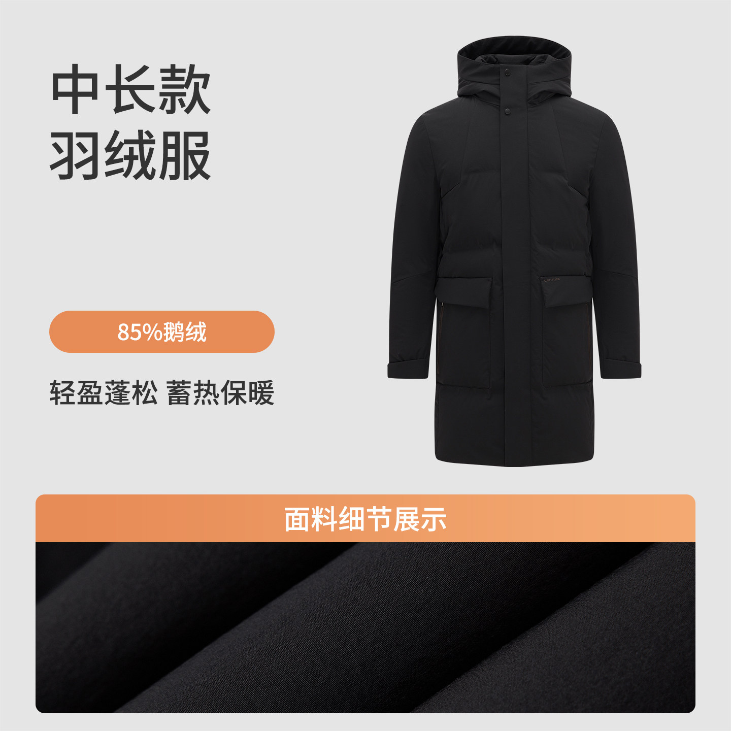 85%鹅绒 连帽中长款 梦特娇男士 时尚 外套御寒保暖J 高充羽绒服冬装
