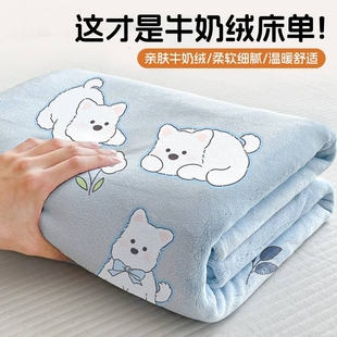 牛奶绒床单奶油色秋季 加厚保暖珊瑚绒床盖加绒被单床套抗静电床笠