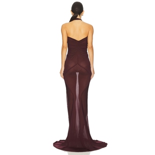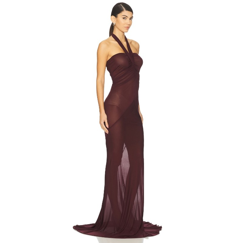 Halter 酒红色REVOLVE小众新款 Neck Gown Ruched Atlein