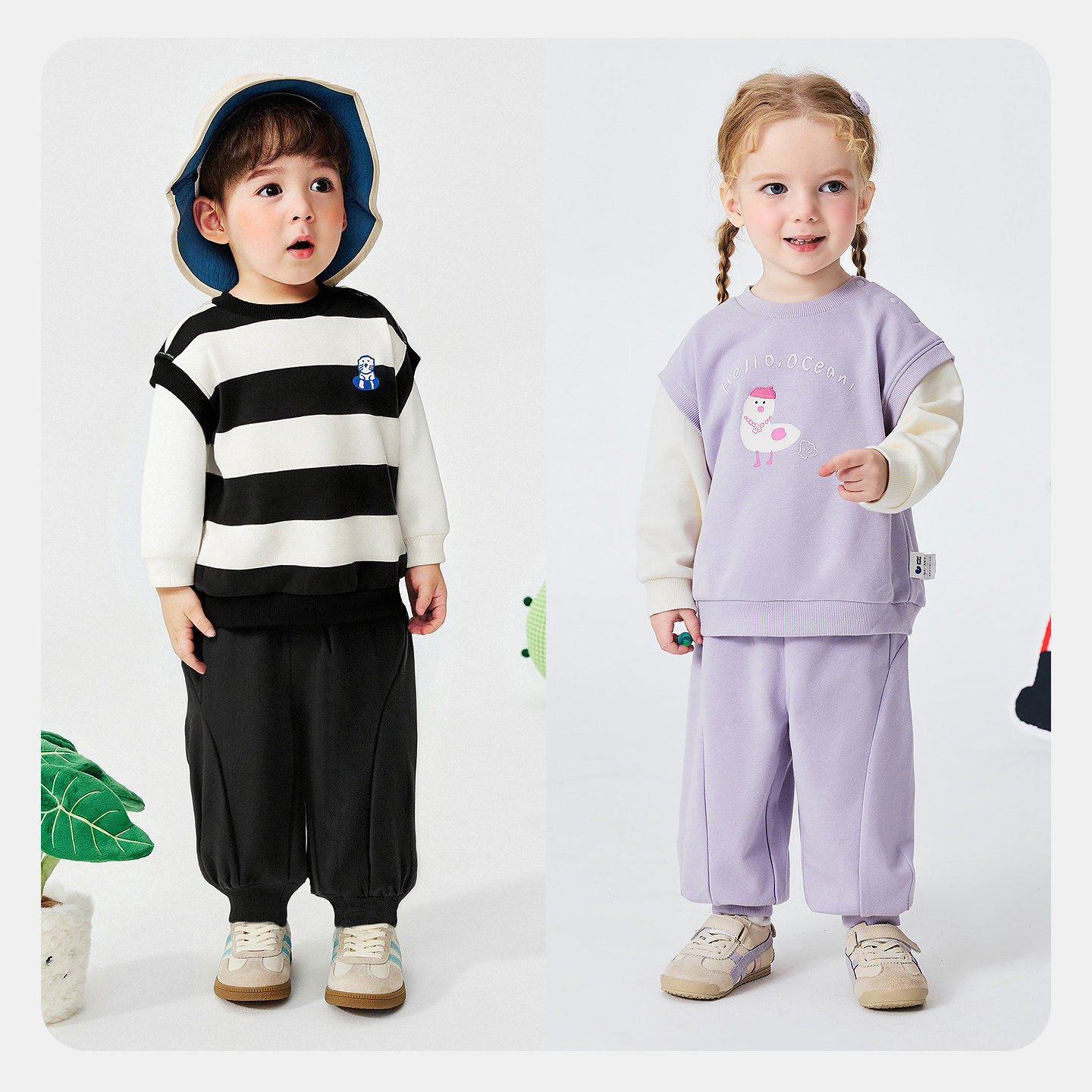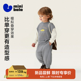 两件套2026春新款 迷你巴拉男女童宝宝套装 柔软亲肤有型卫衣长裤