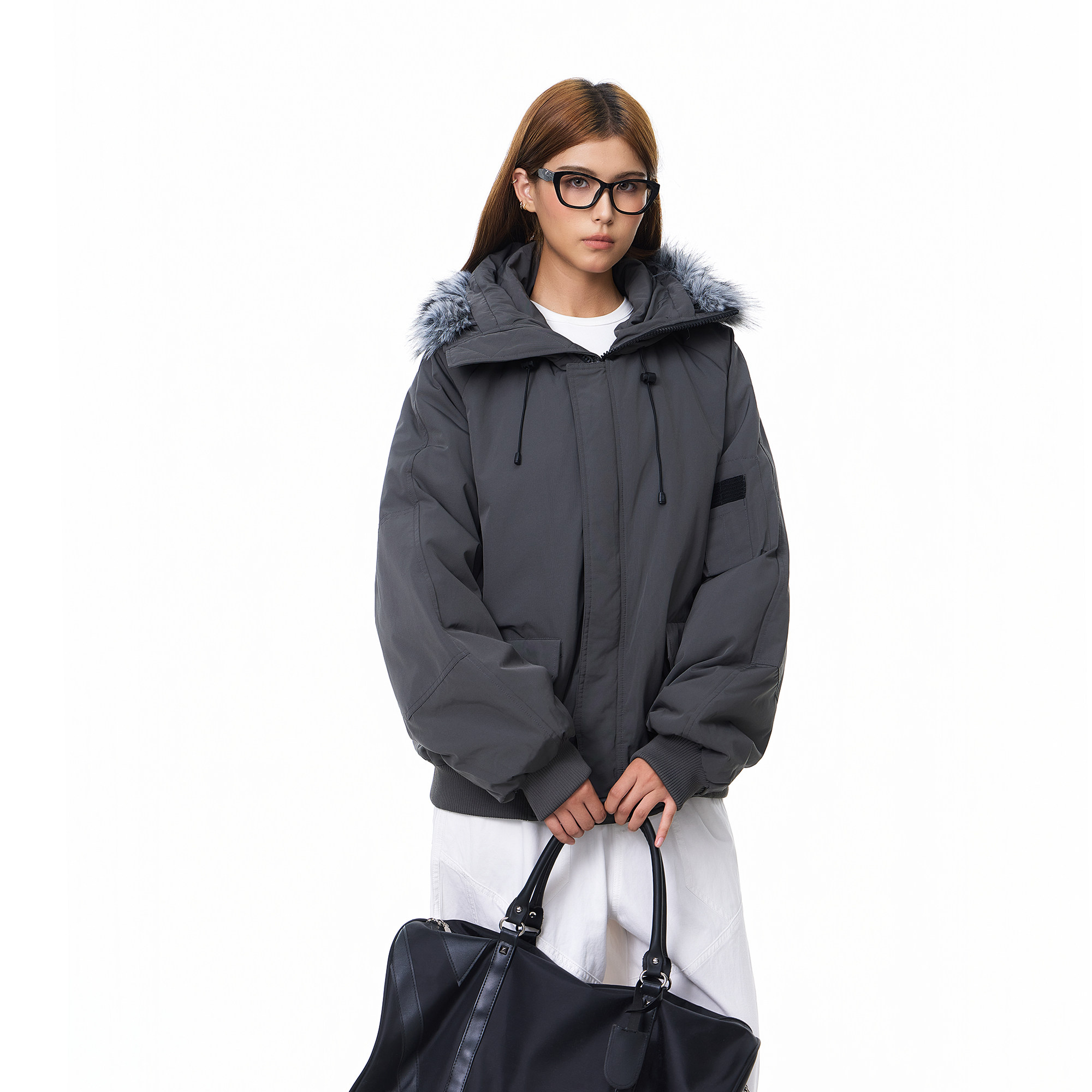 Syri秋冬可拆卸新款 派克服保暖外套 90白鸭绒连帽毛领羽绒服男女款