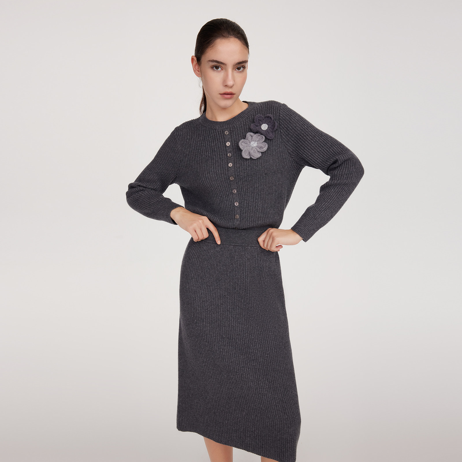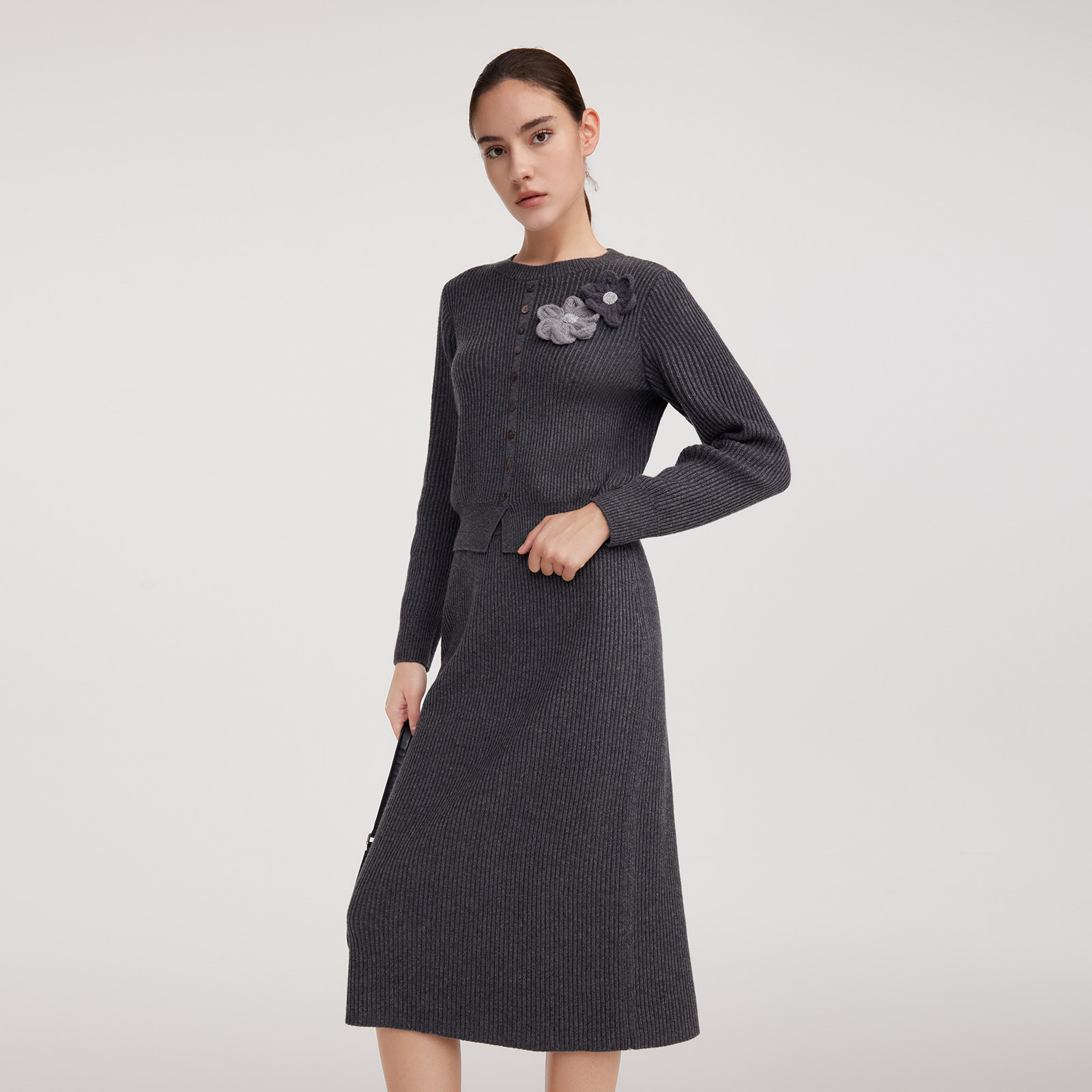 一整套穿搭好看立体花毛织两件套 女秋季 首降5折 歌莉娅羊毛套装