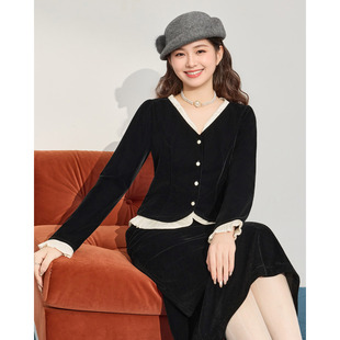 大码 微胖 女装 2025秋冬新款 气质天鹅绒上下套裙 IEF 法式 爱依服