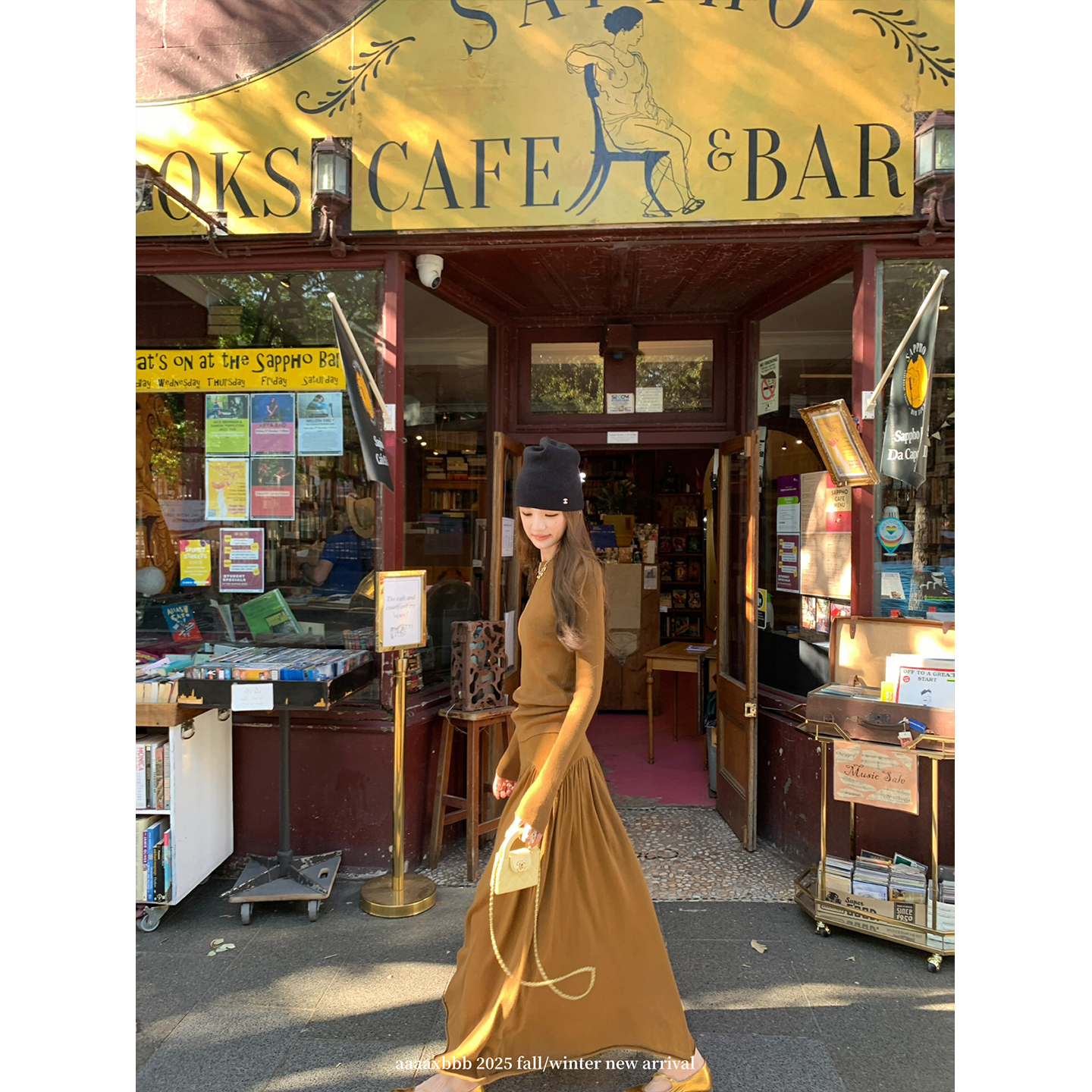 aaaaxbbb 返场限定色超牛面料针织上衣长裙两件套秋冬 焦糖牛角包