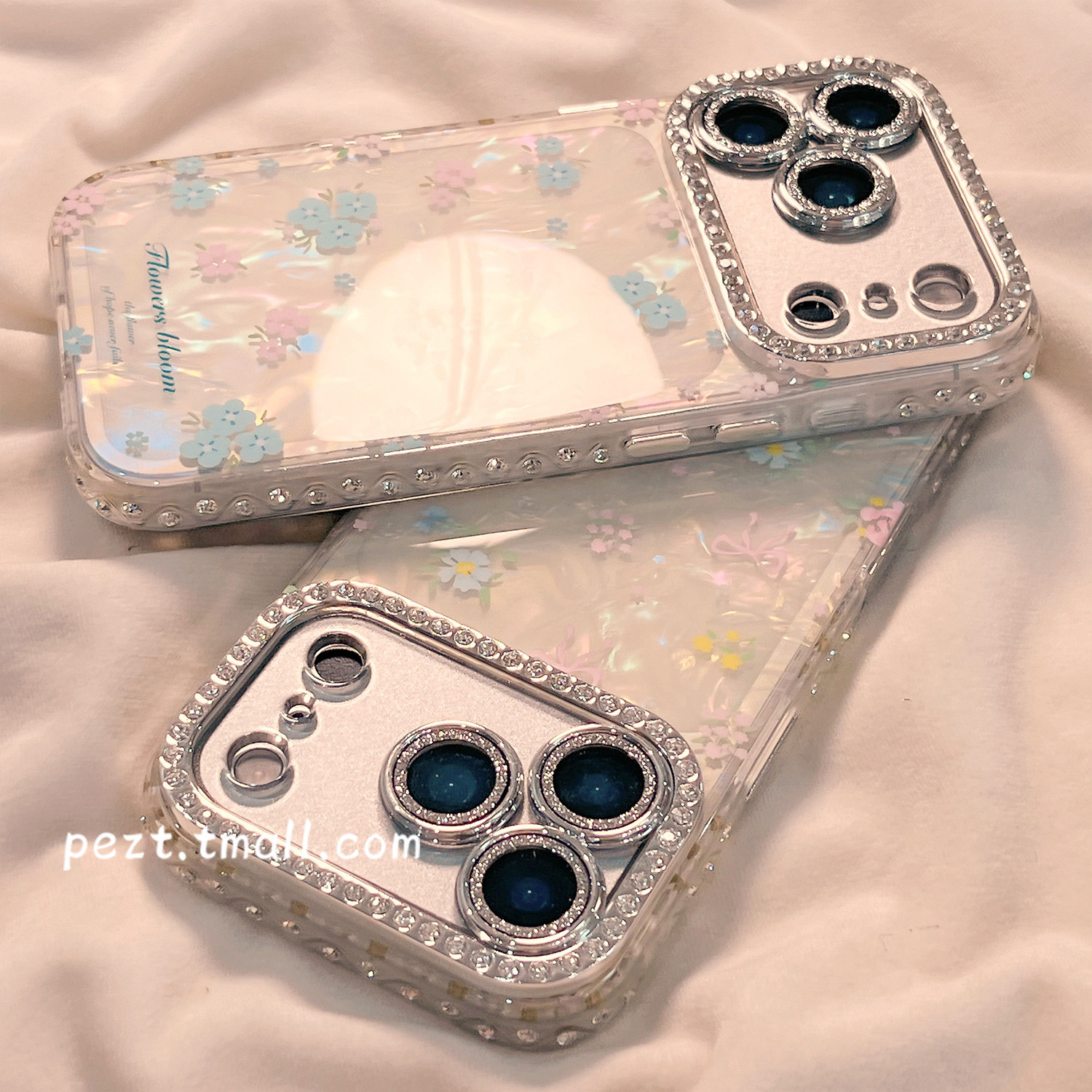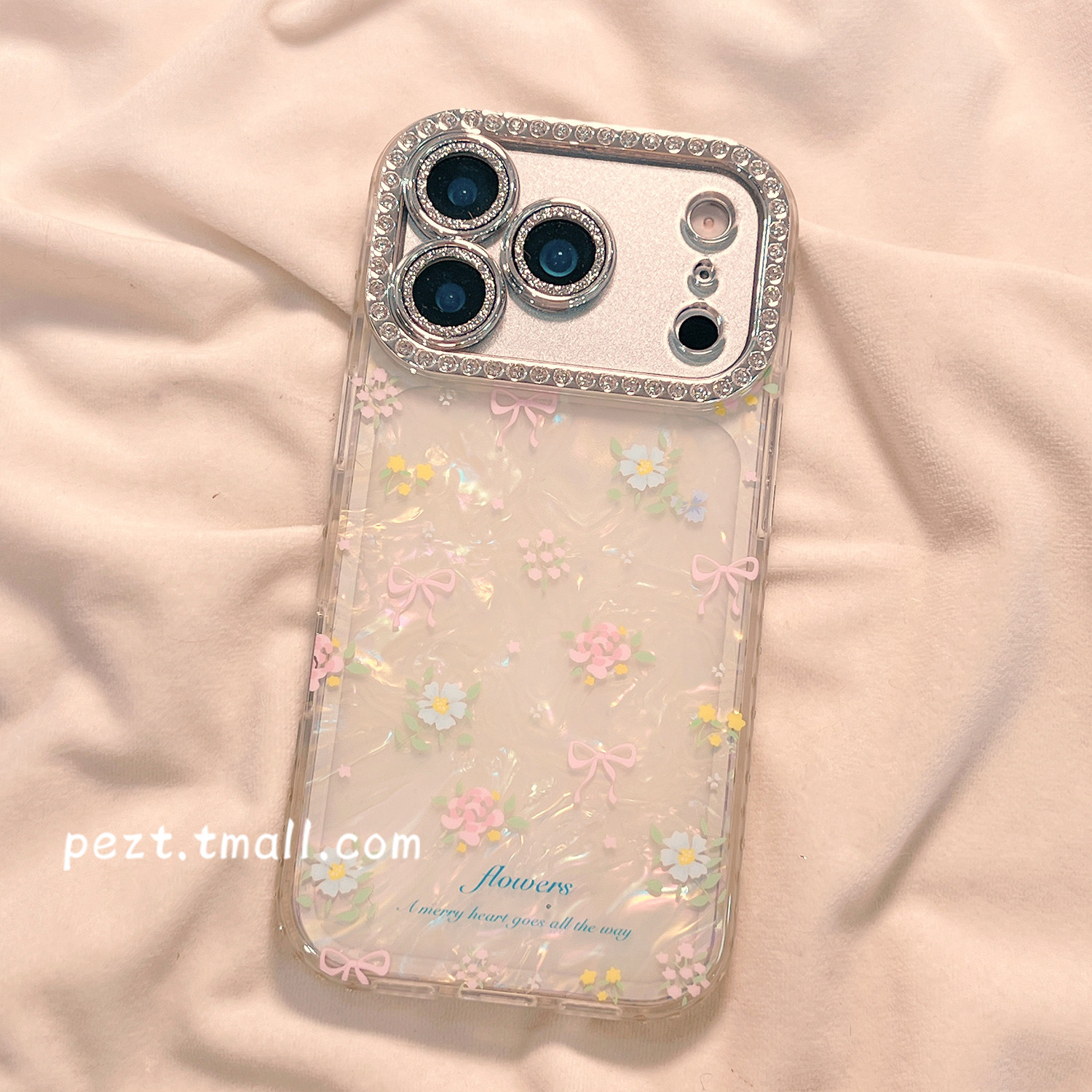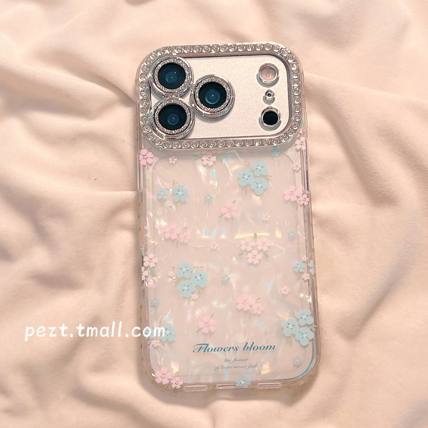 闪钻小清新粉蓝花朵适用苹果17手机壳贝壳纹iphone16promax少女心17pro新款 15防摔14女日韩风16全包13保护套