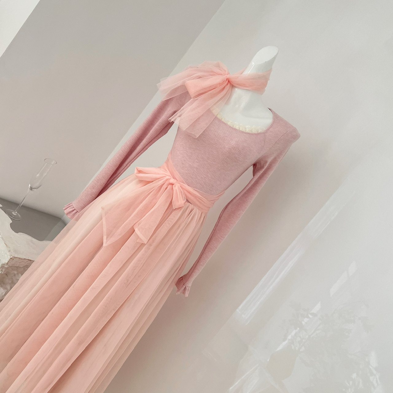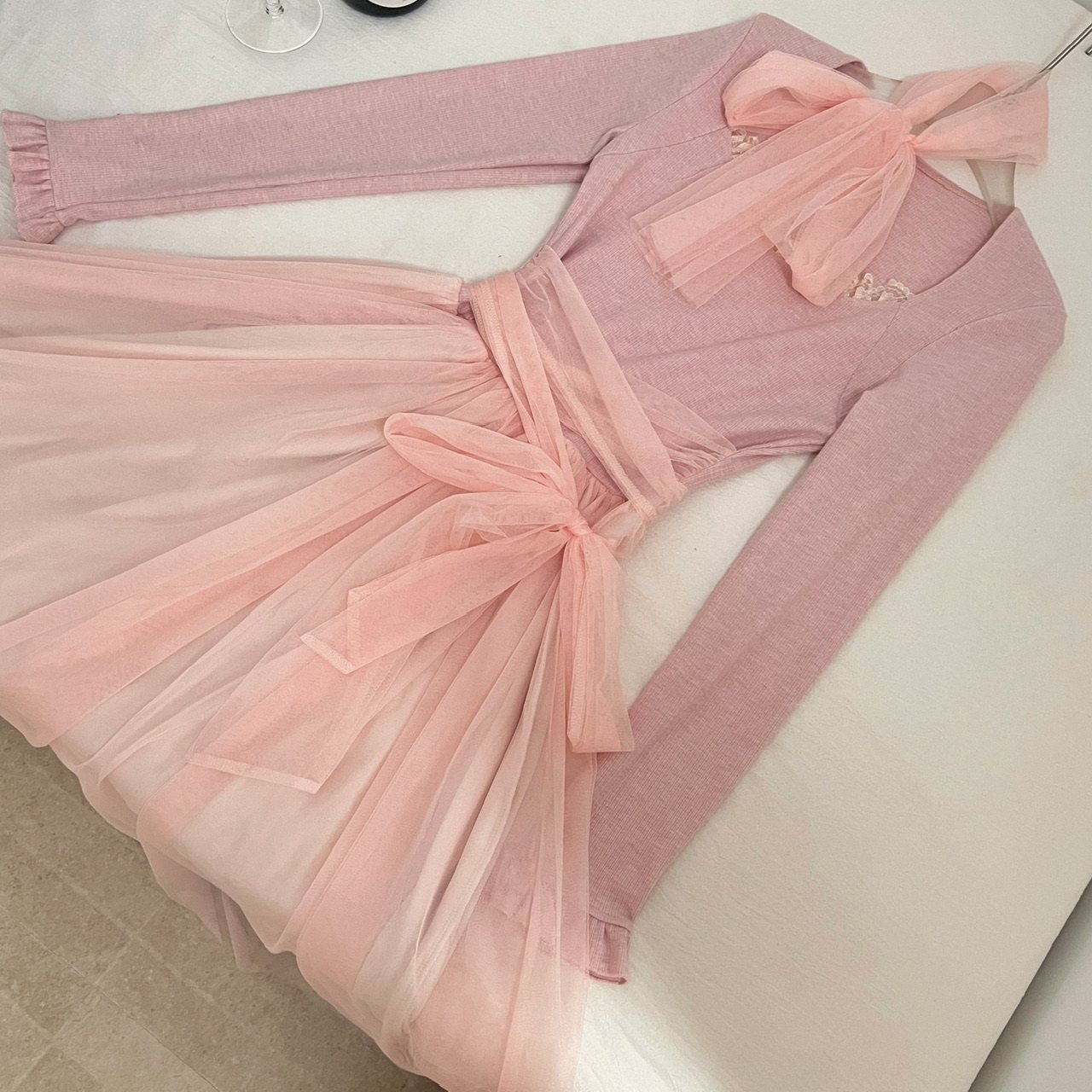 少女感温柔显白拼接网纱仙女风显瘦长袖 连衣裙