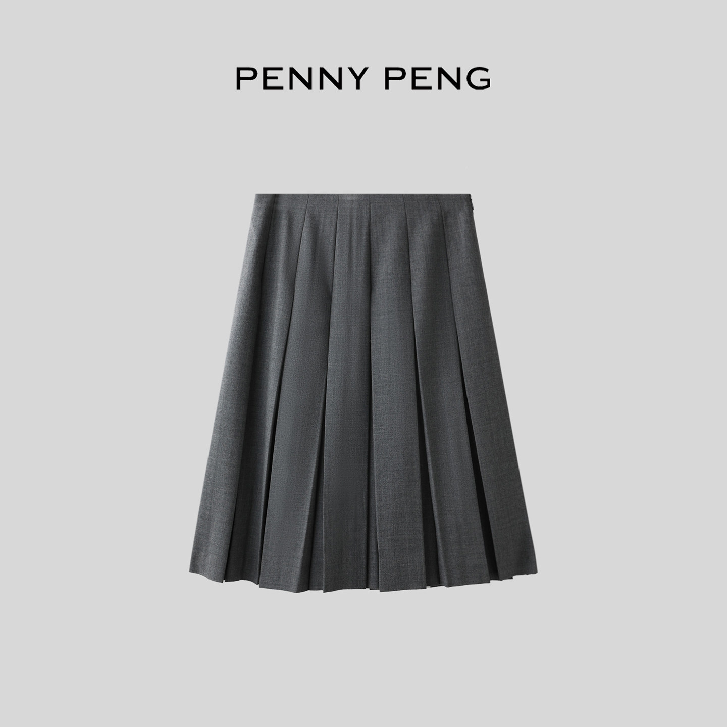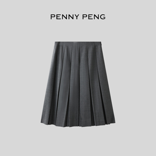 春秋新款 自定义 灰色百搭学院风miu系羊毛百褶半裙 时尚 PENNYPENG