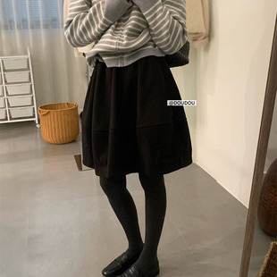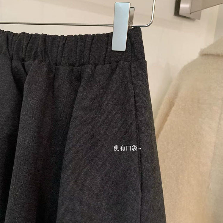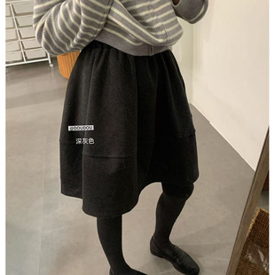 加厚高腰设计显瘦宽松半身裙裤 新款 2025年秋冬季 灰色百搭毛呢裙裤