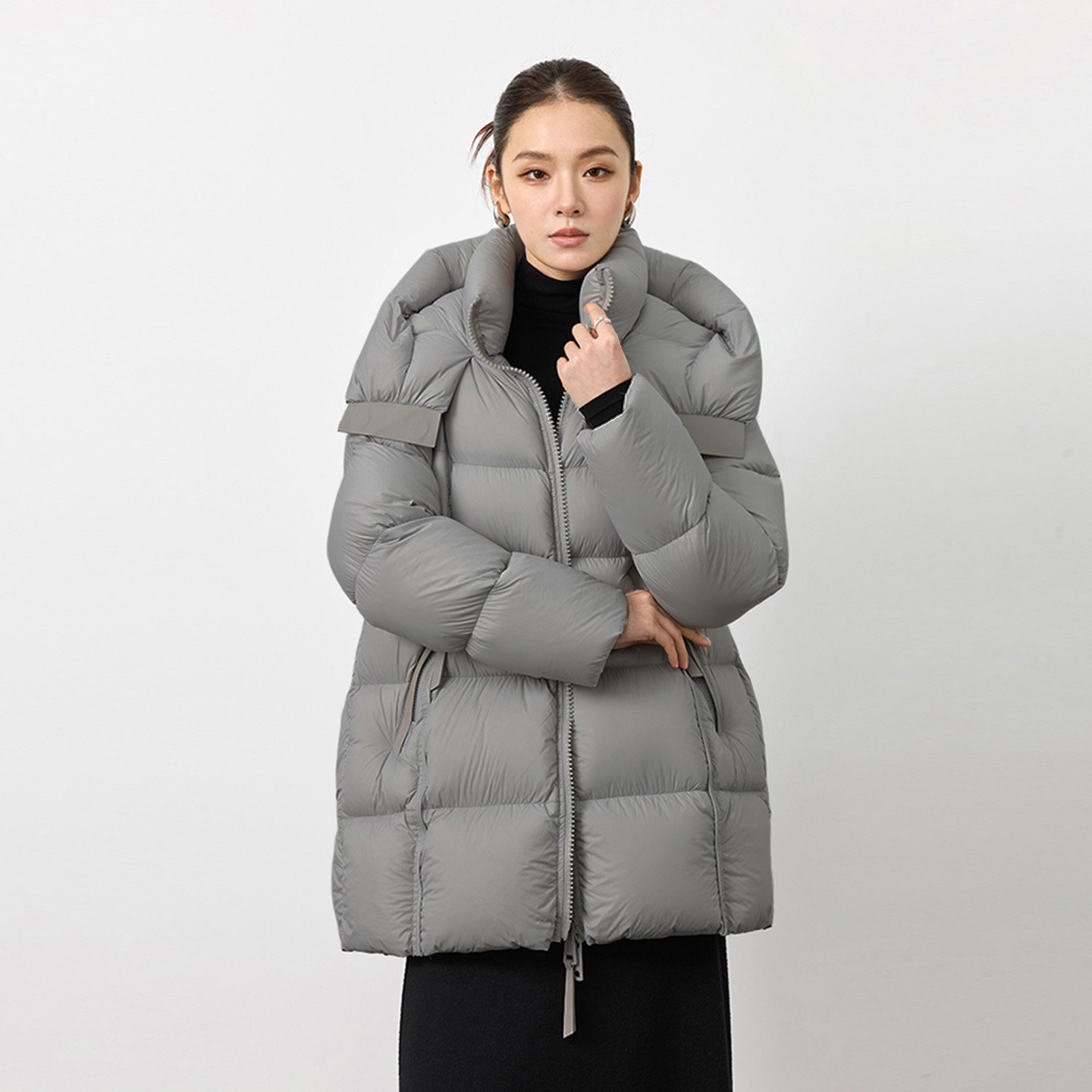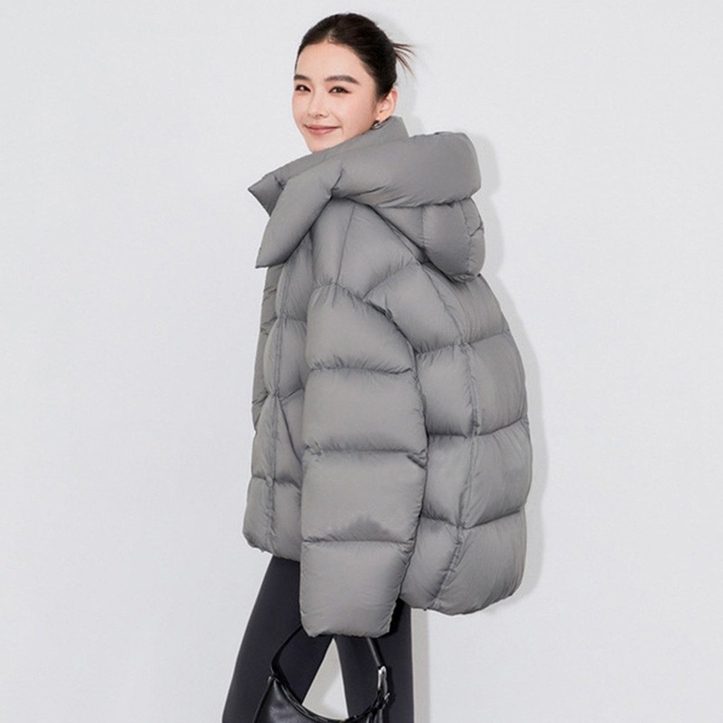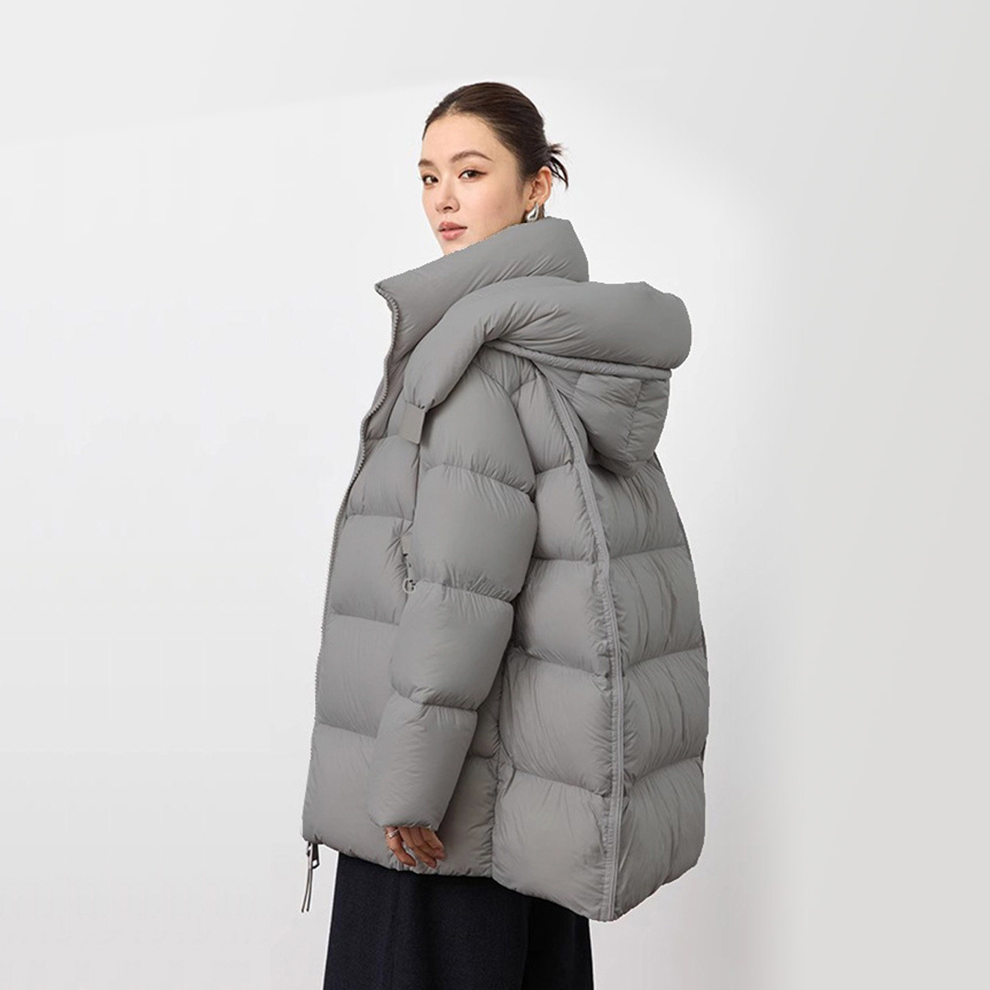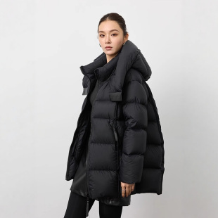 90白鹅绒羽绒服2025冬季 连帽宽松云朵泡芙女外套加厚 高级感中长款