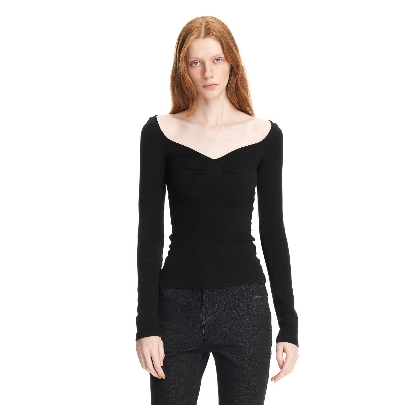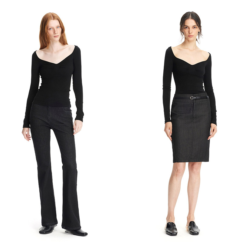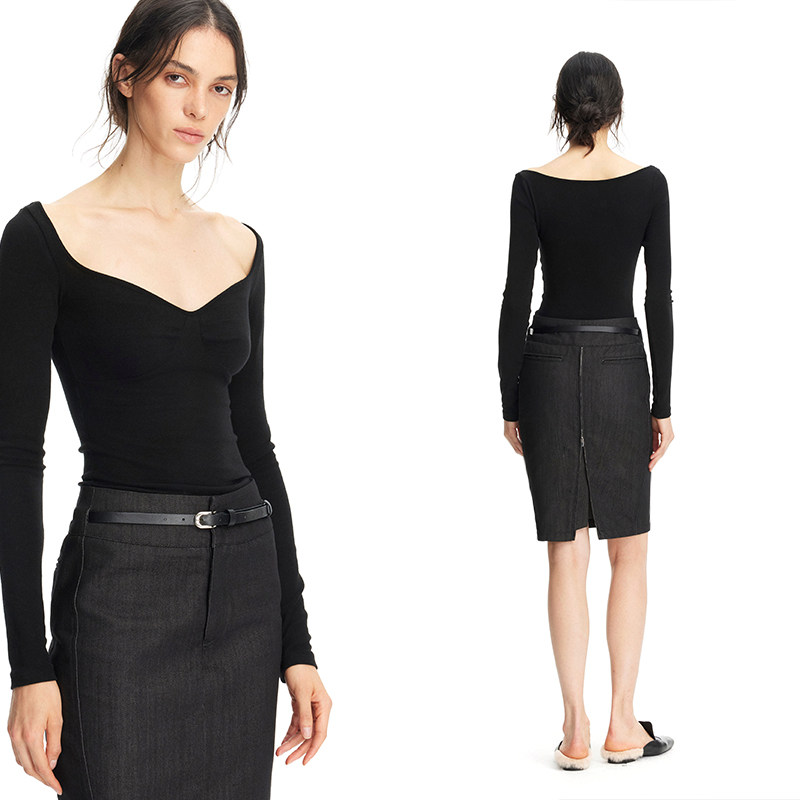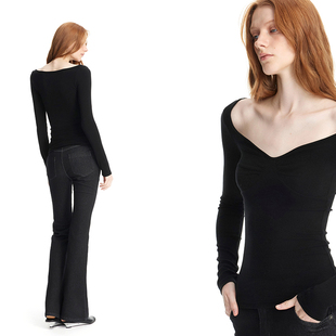 弹力T恤贝壳结构大V领基础打底衫 黑色修身 PAGE EMPTY