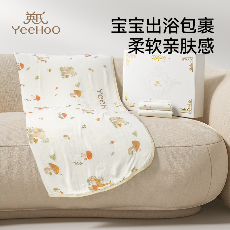英氏婴儿浴巾礼盒套装 宝宝新生儿童浴巾超软吸水包巾洗澡纱布浴袍