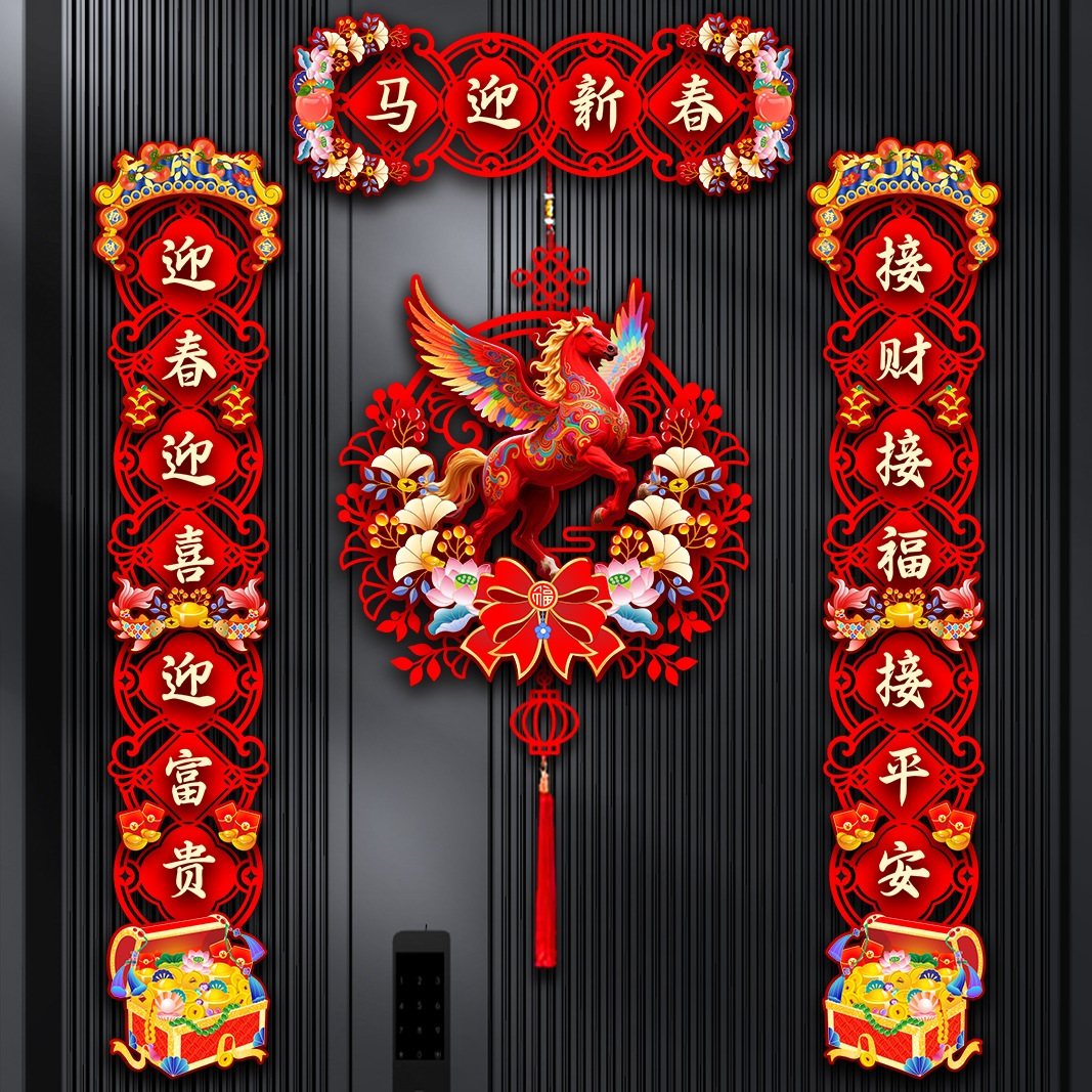 2026马年门贴卡通立体生肖门贴春节过年年画新年用品福字对联窗花