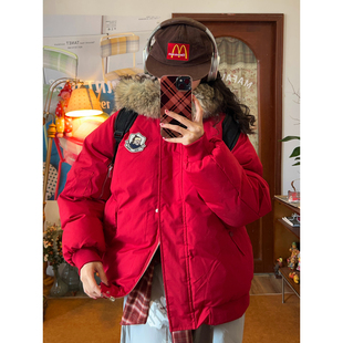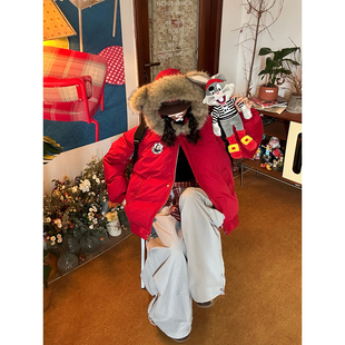 保暖派克服外套 新款 C2自制 小熊耳朵连帽棉服男女可拆卸毛领冬季
