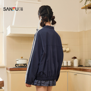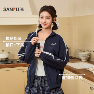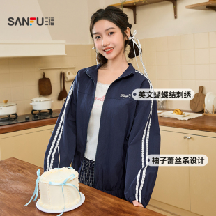 514765 小个子运动风蕾丝条纹宽松夹克女装 三福外套女2026新款 春季