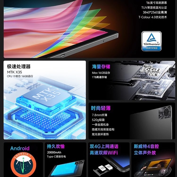 HIUWIEI 16英寸5G平板电脑学习游戏办公读谱琴谱4K全面屏 2025新款