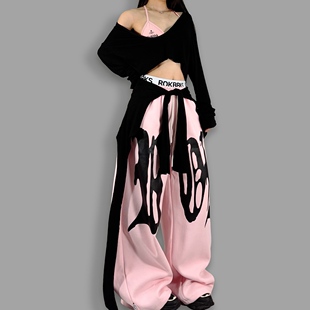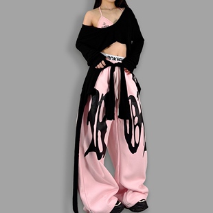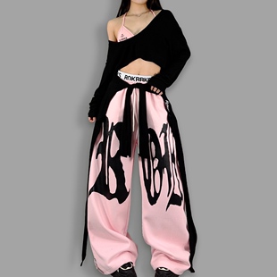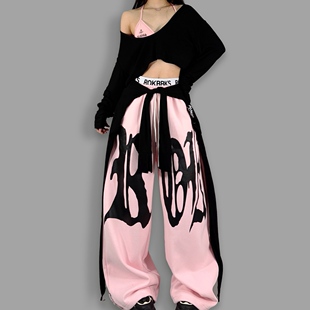女宽松街头风休闲 嘻哈风字母印花阔腿裤 ROKBBK-K 布韩美式
