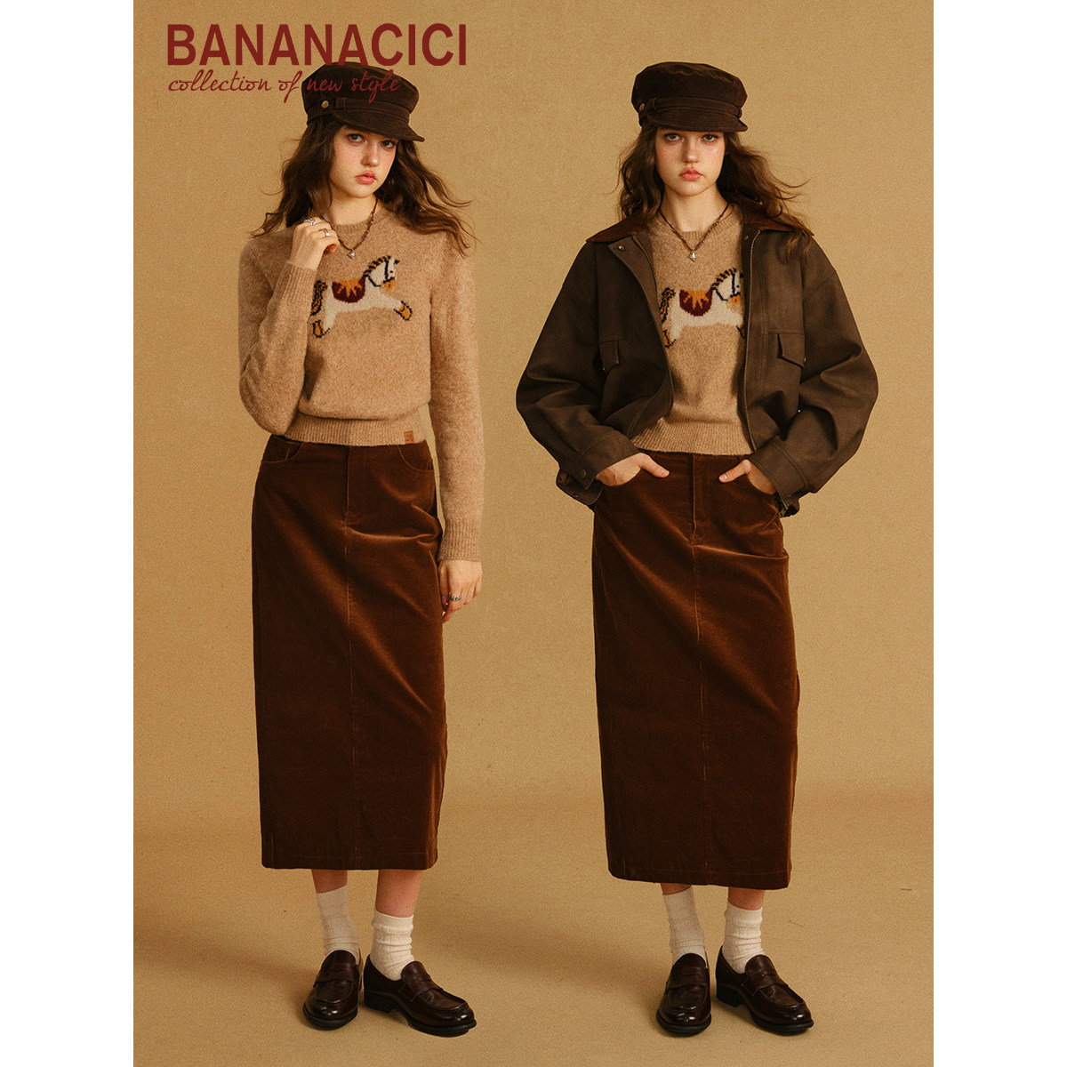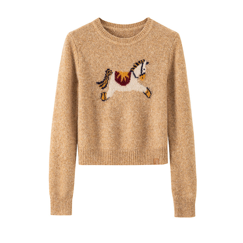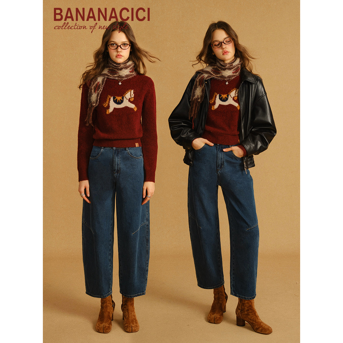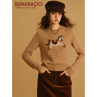 插画羊驼毛圆领针织衫 BANANA 一马当先 新款 CICI2026年春季