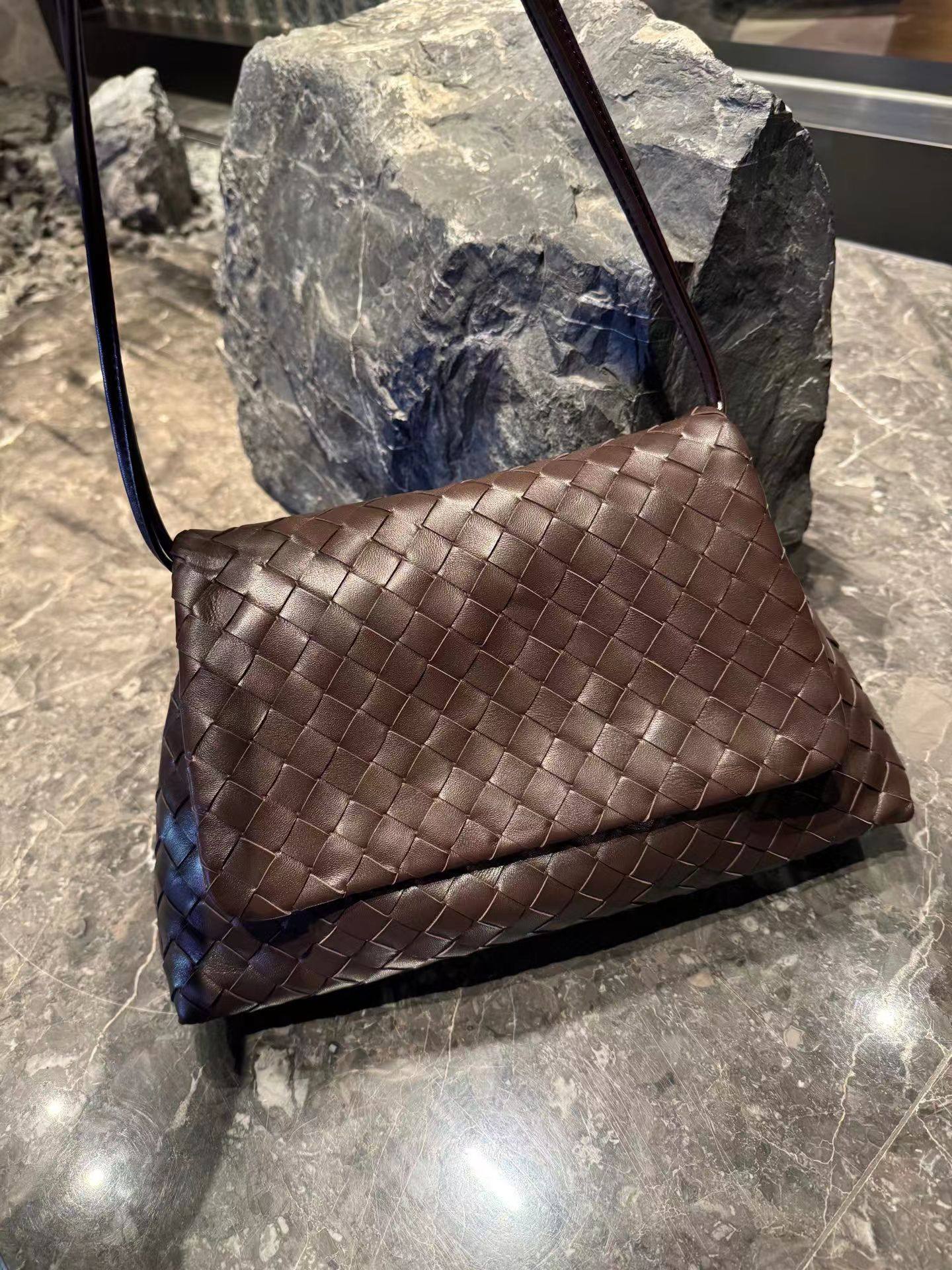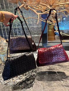 QingLi包包女2025新款 秋冬真皮手工编织单肩斜挎托特包通勤腋下包