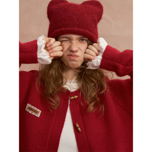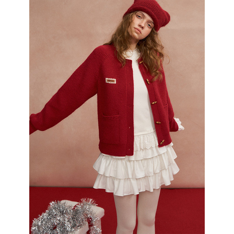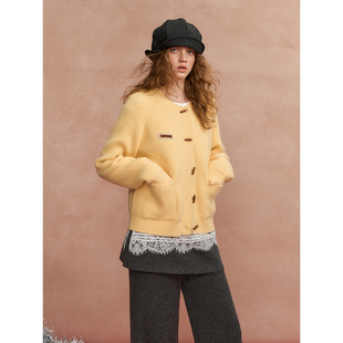 SOMESOWE 复古牛角扣圆领毛衣开衫