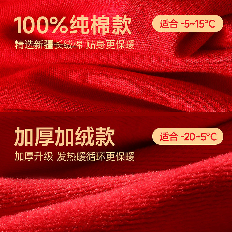 保暖内衣女纯棉秋衣裤 2026马年恒源祥本命年套装 红色结婚衣服男士