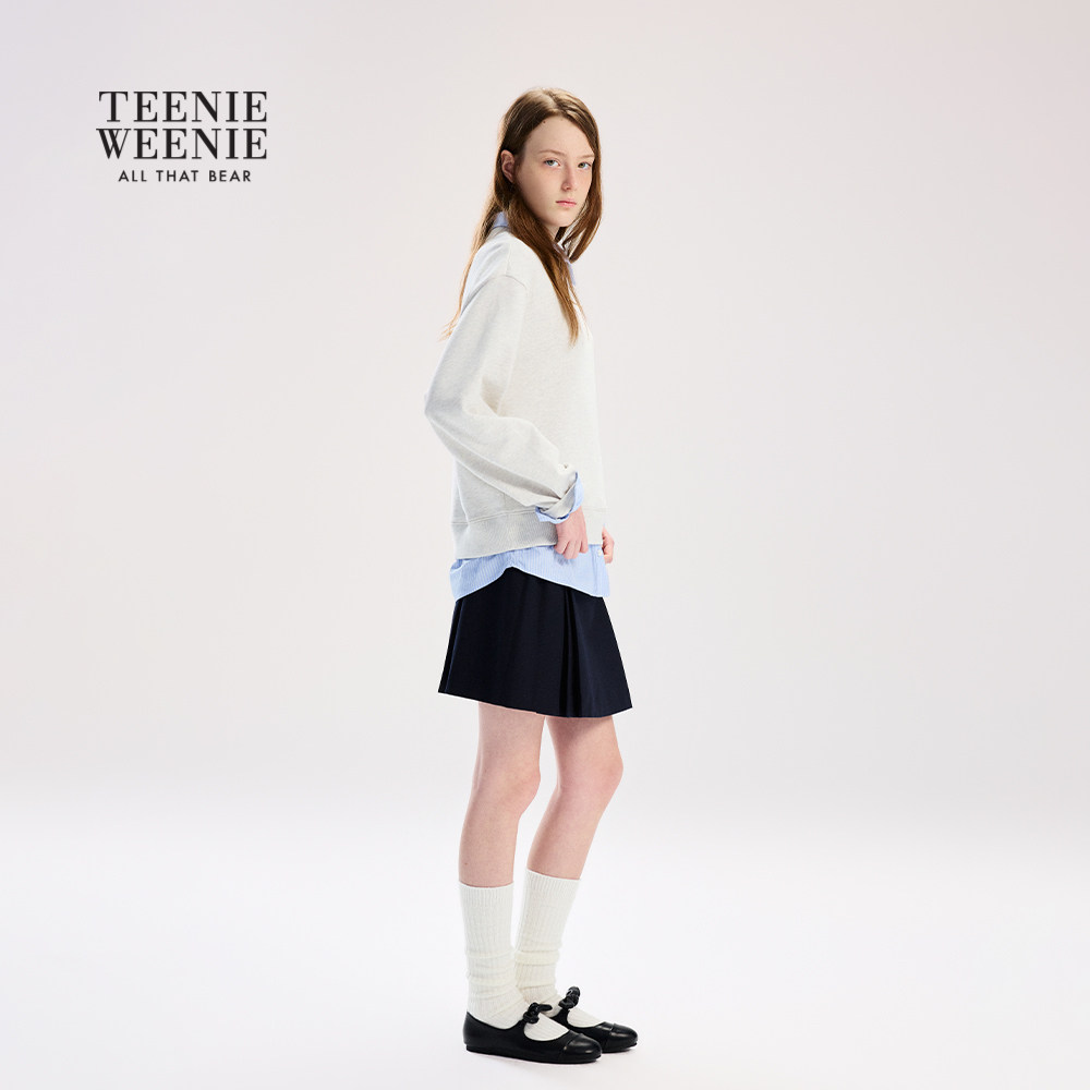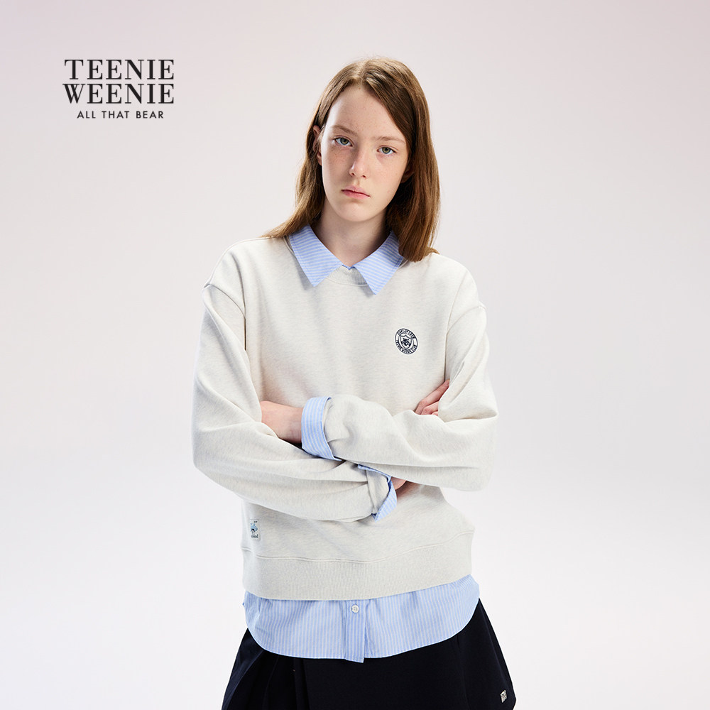 式 TeenieWeenie小熊女装 学院风衬衫 新品 时髦拼接套头卫衣 26春季