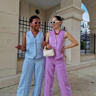 套装 Lienni2025冬季 显瘦镂空挖肩上衣女中高腰百搭阔腿裤 修身 新款
