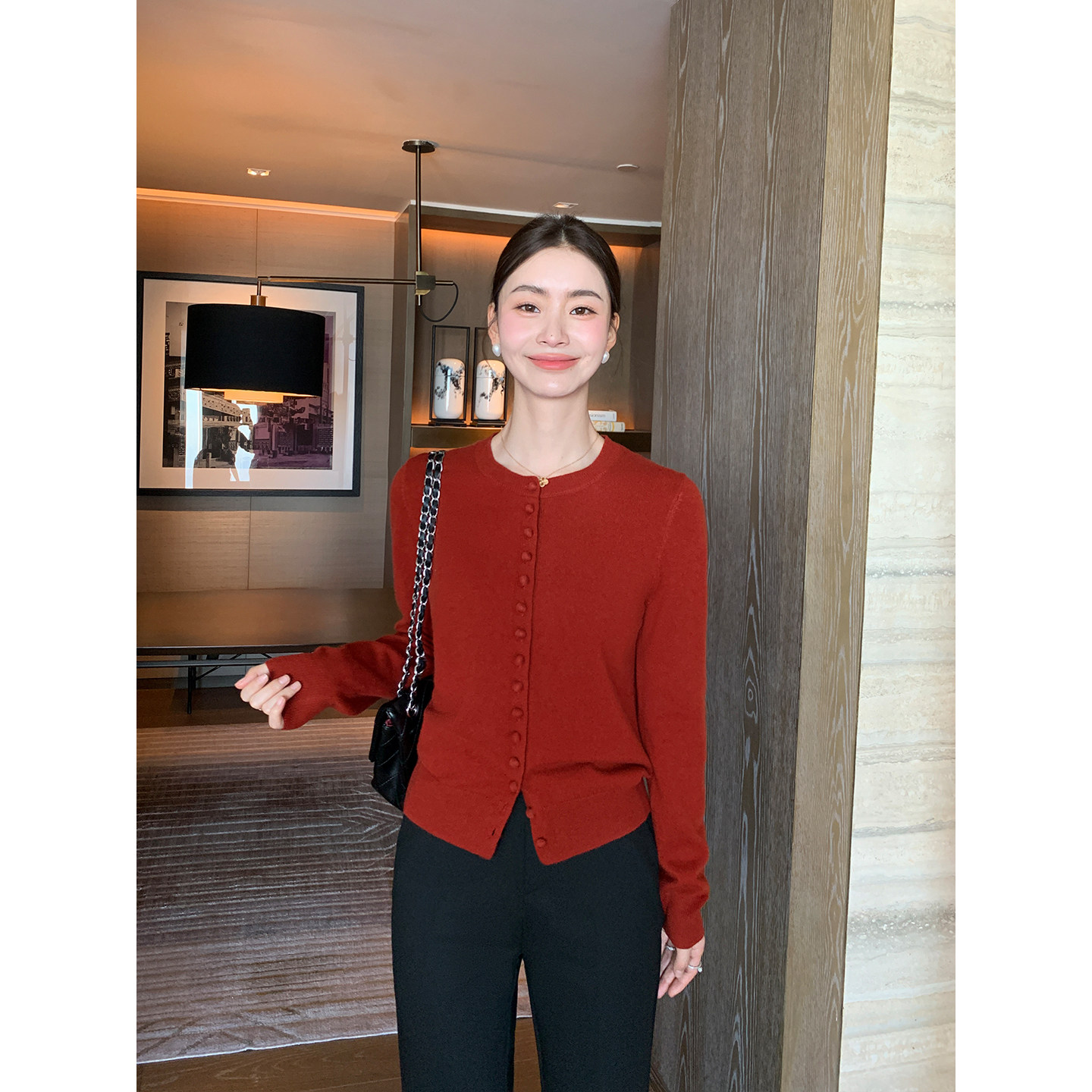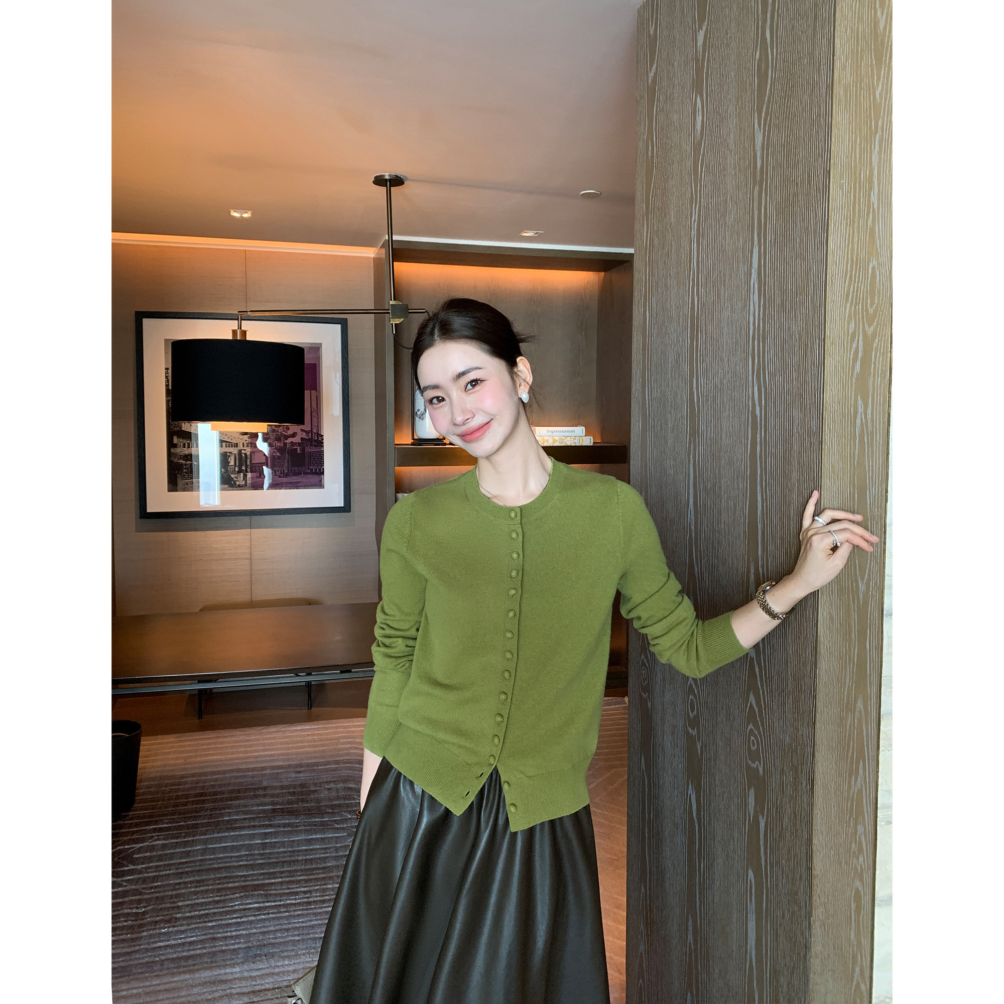 女气质优雅长袖 Maven 1OO羊毛圆领开衫 暖绒触感 针织上衣 Lin