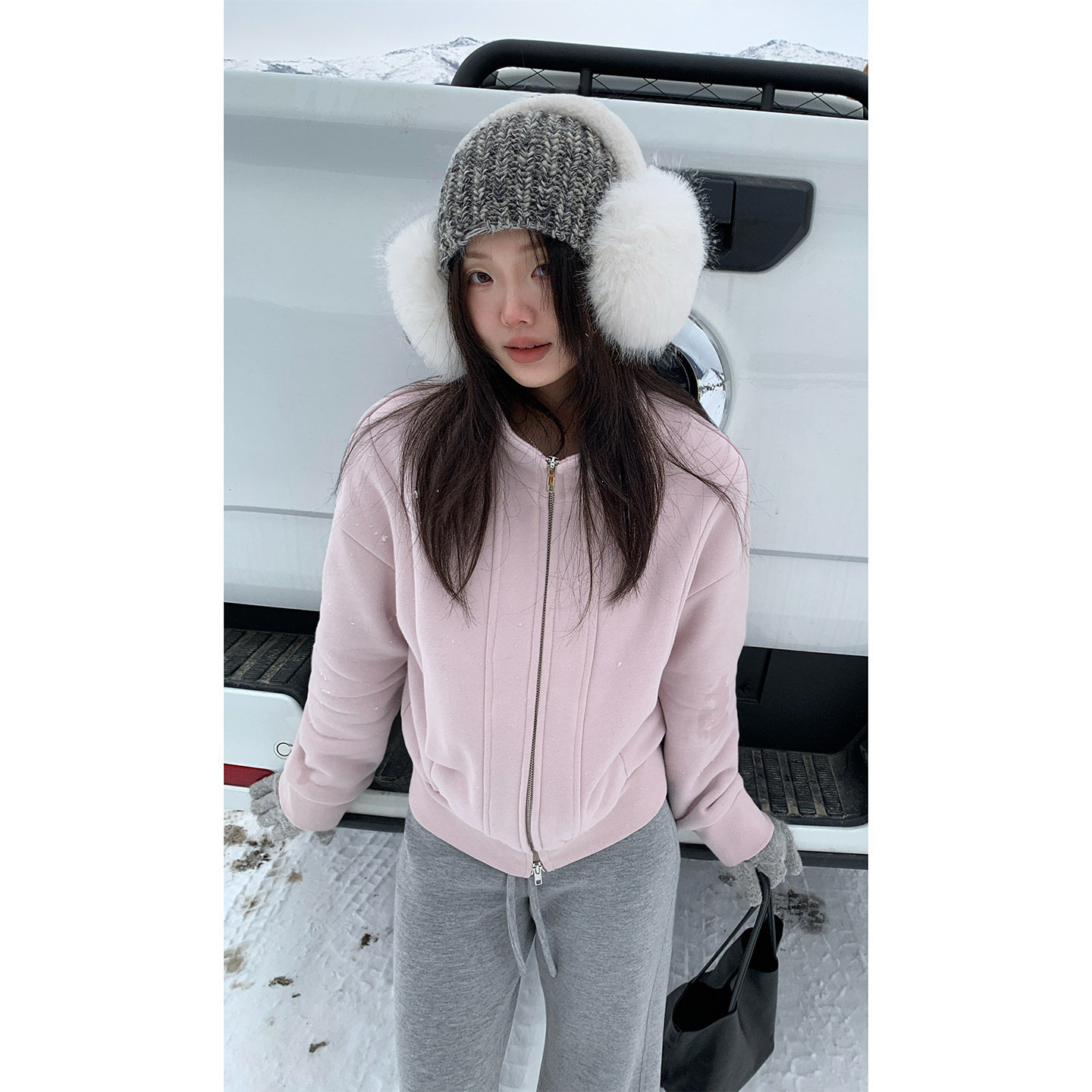 保暖修身 卫衣女冬短款 上衣外套 加厚加绒立领开衫 一三良品小个子