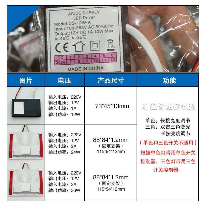 镜前灯控制器智能镜触摸开关控制器一体式 自带变压器LED无极调光