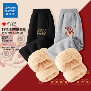 中大童羊羔绒运动裤 真维斯童装 子儿童新年加绒保暖卫裤 裤 男童冬季