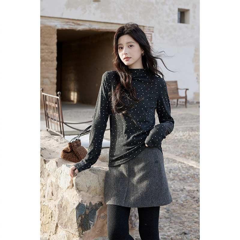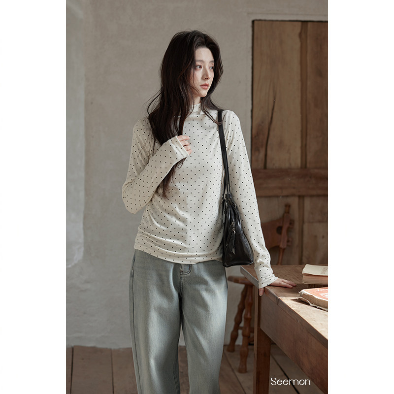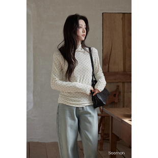 上衣高级感可外穿半高领波点t恤 绝美内搭打底衫 夕蒙2025新款 冬季