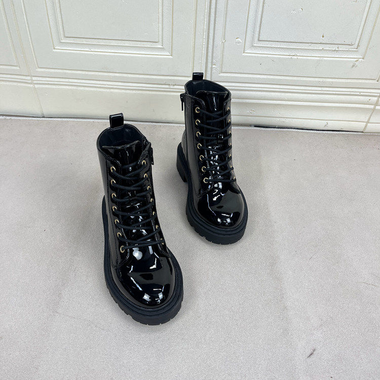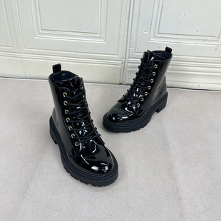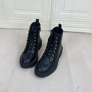 马丁靴 新款 Lady Shoes外贸原单圆头厚底粗跟系带短靴微瑕简约时尚